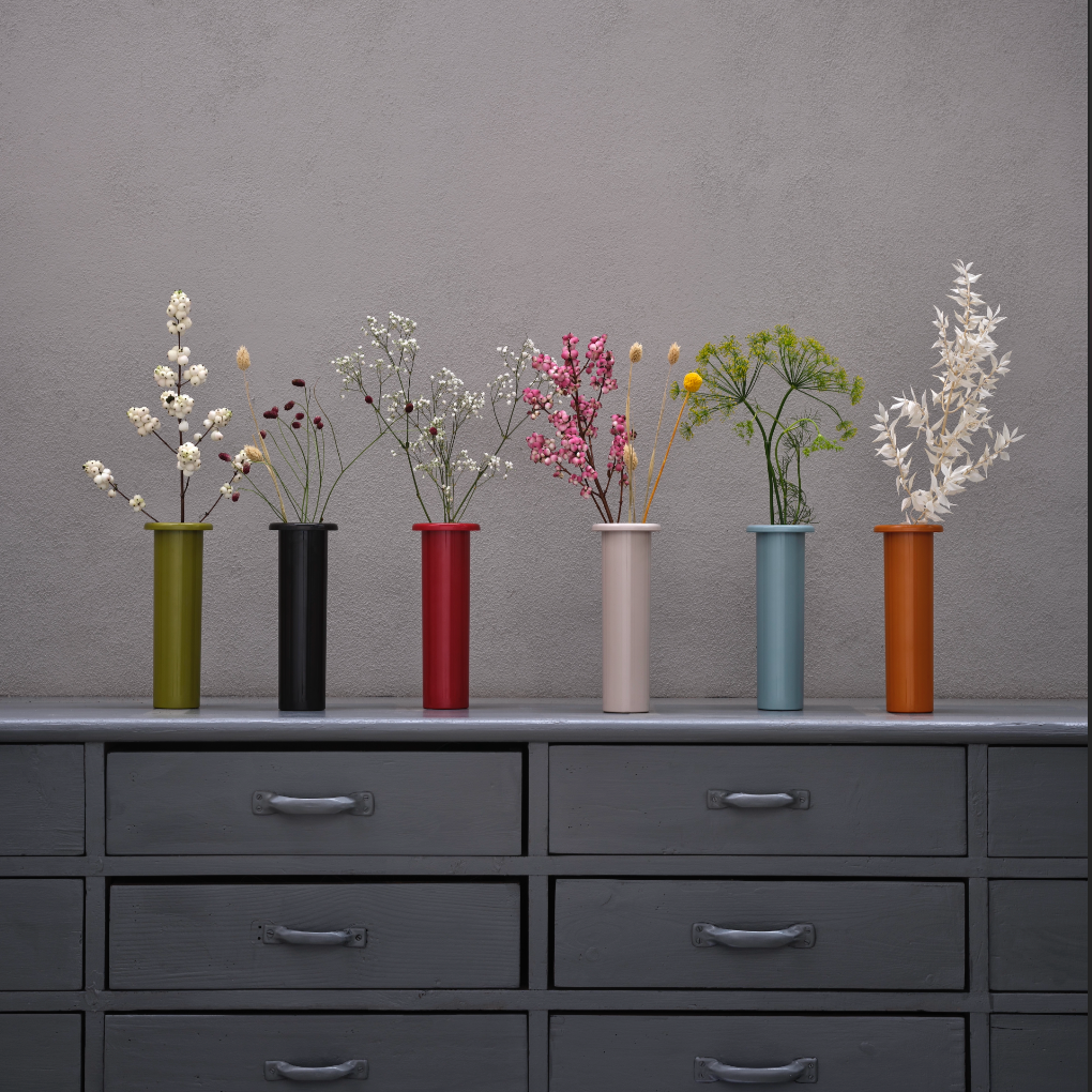 Esta poética lámpara consta de un elemento cilíndrico que encierra la electrónica y los LED y uno extraíble que actúa como florero. Simplemente cambia este último por otros de diferentes colores para crear nuevas combinaciones.