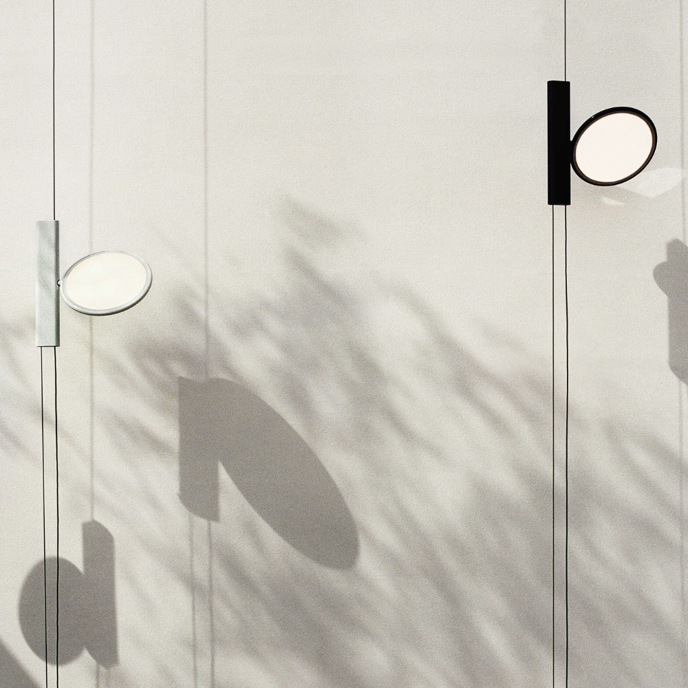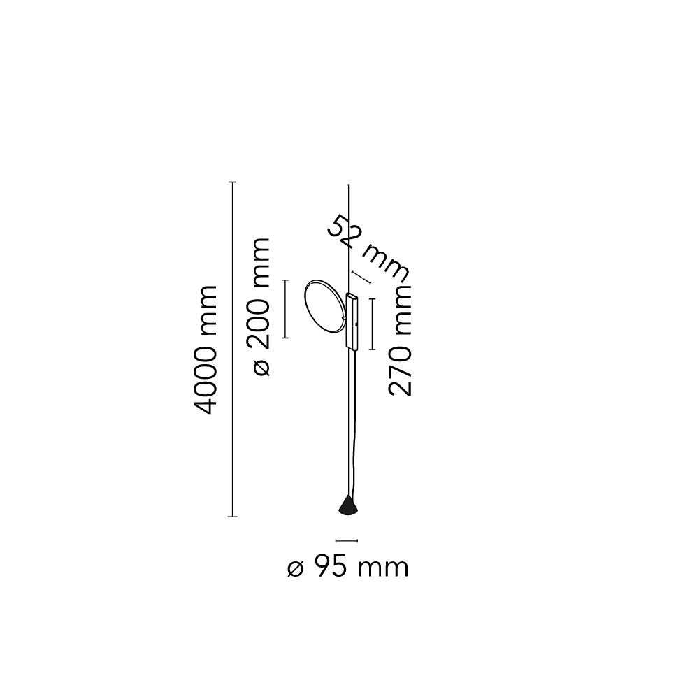 Lámpara de suspensión con luz directa. Cabezal orientable en acabado brillante y cuerpo en tecnopolímero PA66 reforzado con fibra de vidrio. El sistema permite desplazar verticalmente el punto de luz a lo largo de un cable de acero tensado entre el techo y el suelo. Interruptor con tecnología Soft Touch para un control de intensidad suave e intuitivo. Adaptador con enchufes intercambiables.