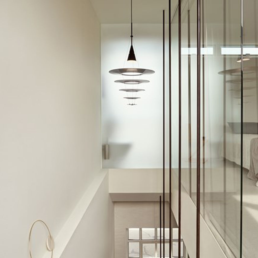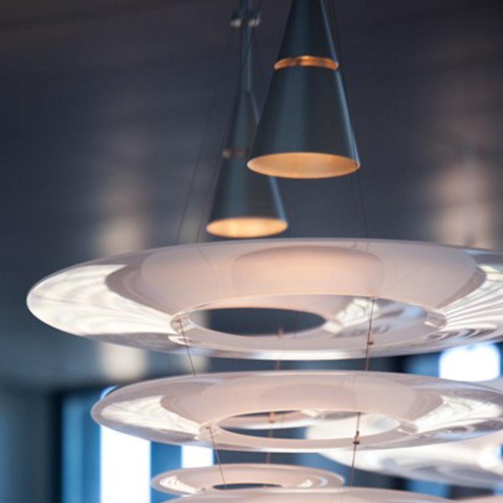 Lámpara de suspensión en aluminio y acrílico. 1 x 75W Halopar 20 GU10. Diámetro 545 mm.