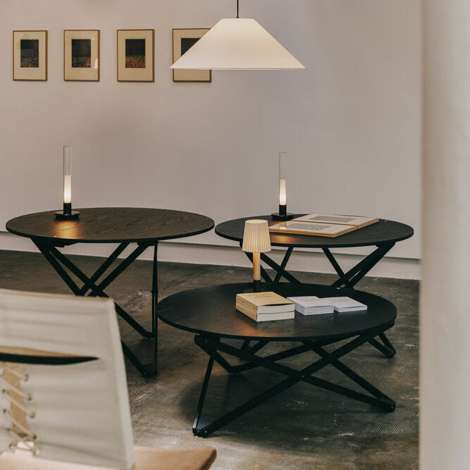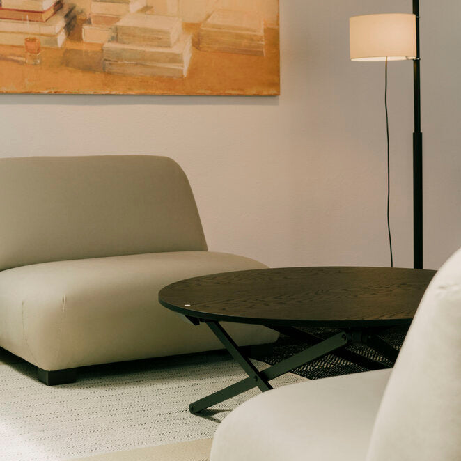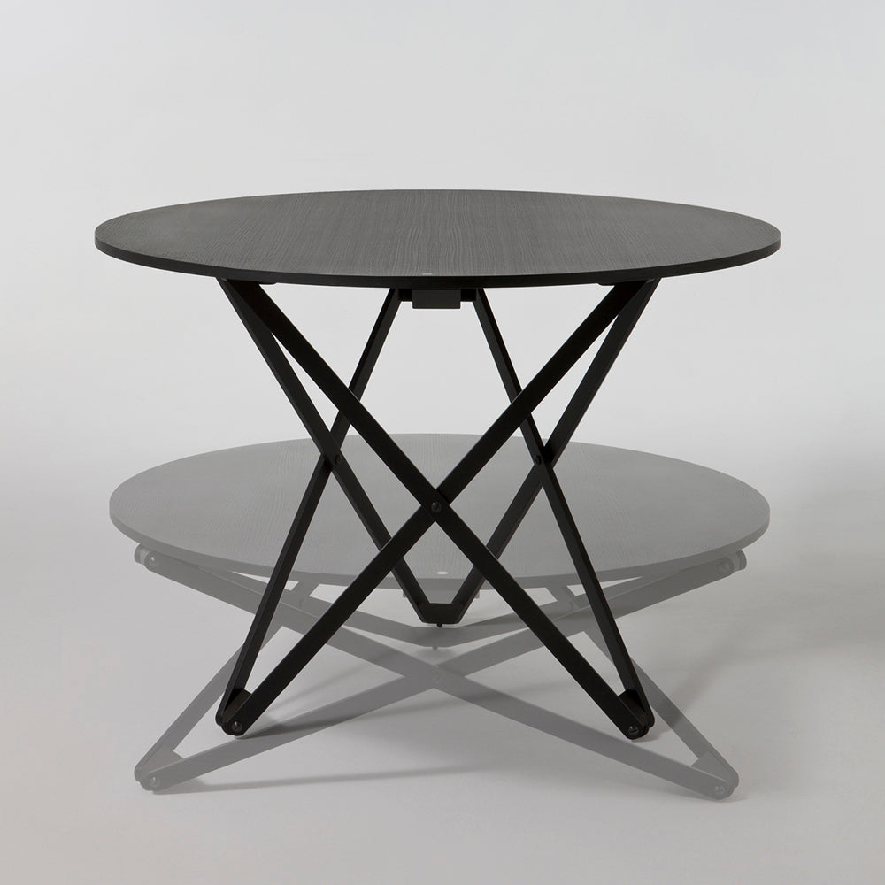 Diseñador: Robert-Heritage-Roger-WebbDiseñada por los británicos Peter & Alison Heritage y Terence Webb, la mesa Subeybaja es una pieza versátil que permite graduar su altura en siete posiciones, adaptándose a distintas funciones en el hogar. Con sobre circular de madera de roble en acabado negro y patas articuladas, combina practicidad y calidez artesanal. Su ingenioso mecanismo de regulación, señalado con un discreto punto blanco sobre la tapa, la convierte en una solución ideal para espacios reducidos, permitiendo que una misma mesa se utilice como mesa de centro, auxiliar o de comedor según la ocasión. Heredada del catálogo histórico de Disform, Subeybaja sigue siendo un ejemplo de diseño funcional y atemporal.