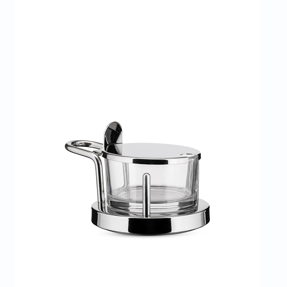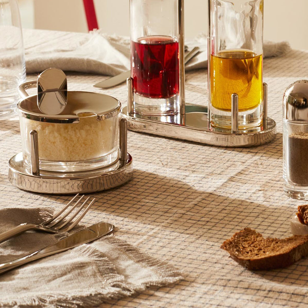 Quesera de mesa en vidrio y acero. Diseño de Ettore Sottsass.
