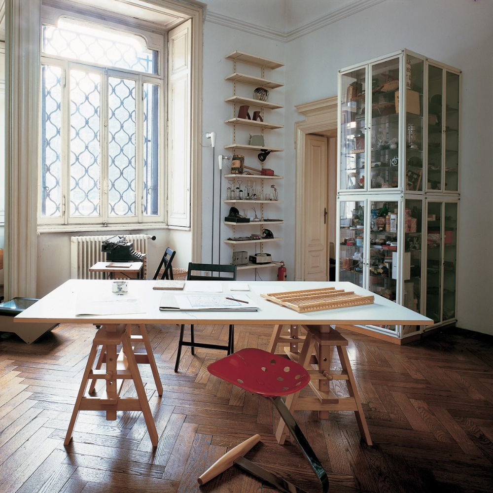 El Mezzadro es una de las piezas más reconocibles del diseño italiano moderno. Creado en 1957 por los hermanos Achille y Pier Giacomo Castiglioni y producido por Zanotta desde 1970, combina funcionalidad, ironía y experimentación en una síntesis perfecta.