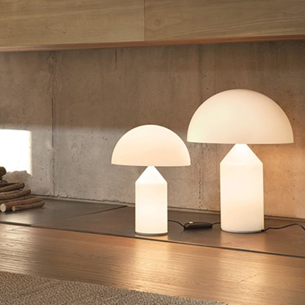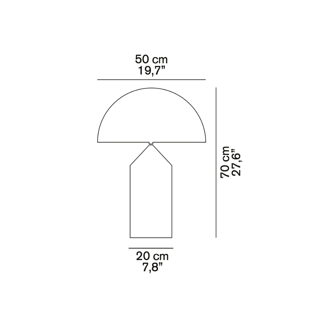 Designed in 1977 by Vico Magistretti, Atollo has established itself over the years as the archetypal table lamp, winning the Compasso d'Oro in 1979 and completely revolutionizing the concept of the classic bedside lamp. Its geometric shapes—cylinder, cone, and sphere—result in an object that is both decorative and essential, disconnected from historical and fashionable trends, and which has become one of the icons of Italian design.