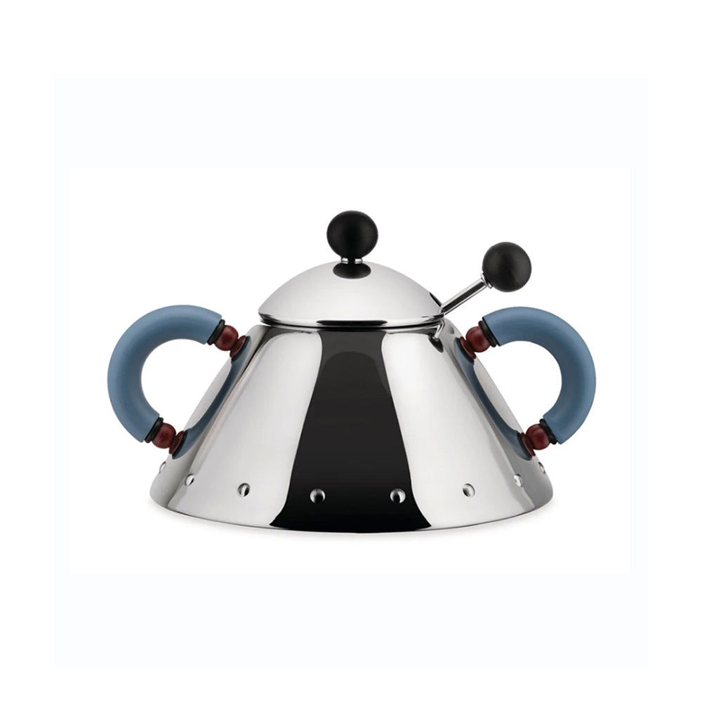 This sugar bowl is one of the first designs in the large and successful family of objects designed for Alessi by American architect and designer Michael Graves. Graves applied a very personal visual code to the sugar bowl, blending influences ranging from Art Deco to Pop Art and even the language of cartoons. Thanks to his extraordinary design approach, the objects in this family have become internationally recognized icons of 1980s and 1990s design.