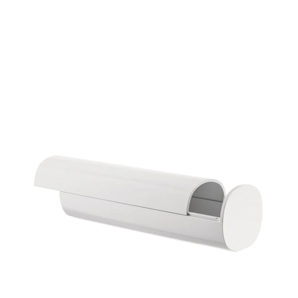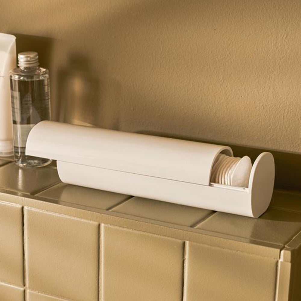 Cotton pad dispenser with sliding lid, made of thick PMMA, white, with a glossy finish.