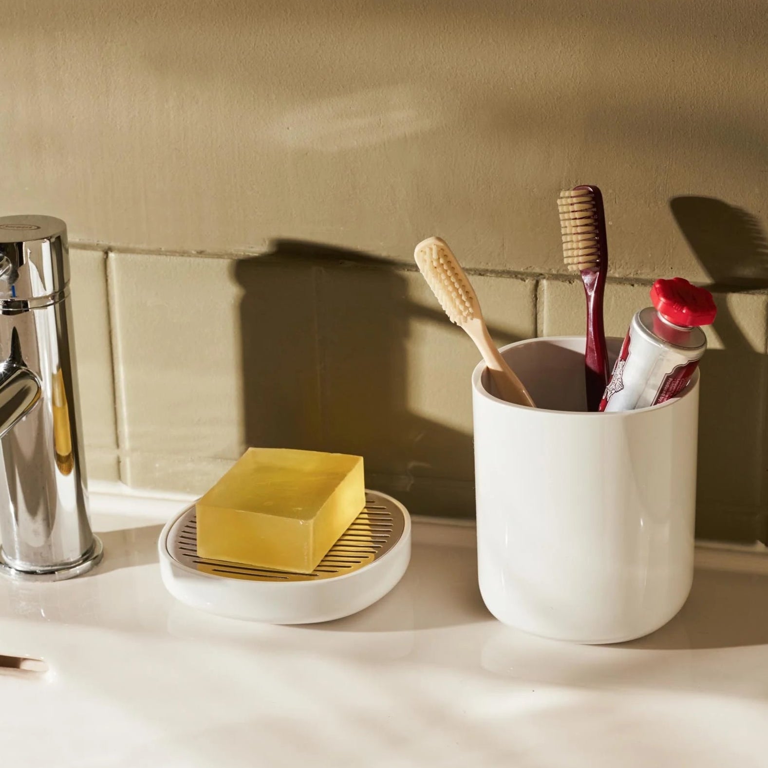 Toothbrush holder made of thick PMMA, white, with a polished finish.