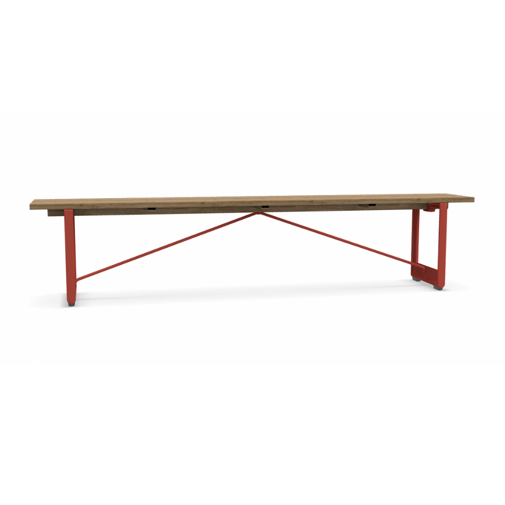 Small stool with a red polyester-varnished iron frame and a solid natural oak seat.