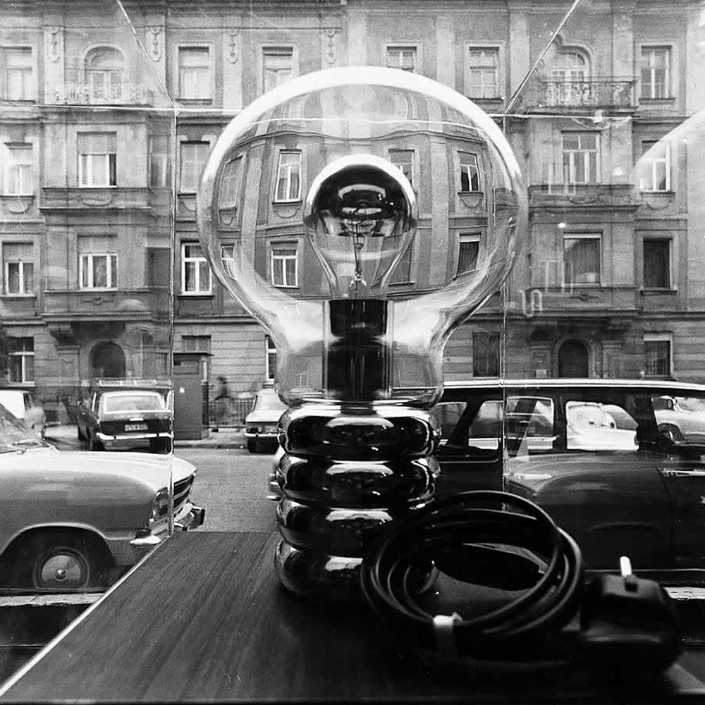 Table lamp with a chrome-plated metal base and hand-blown glass diffuser. Includes an E27 chrome-plated LED bulb. A20/H30