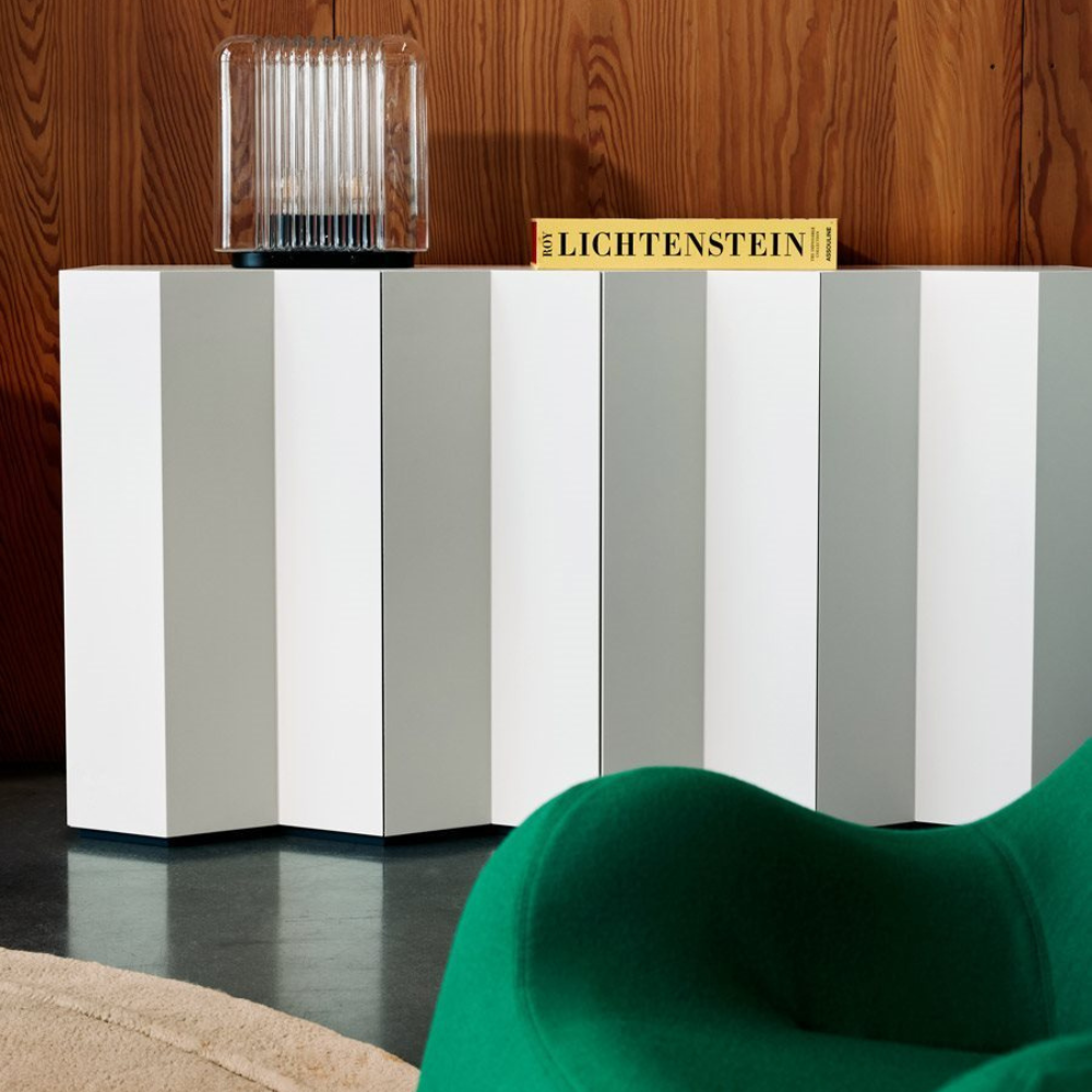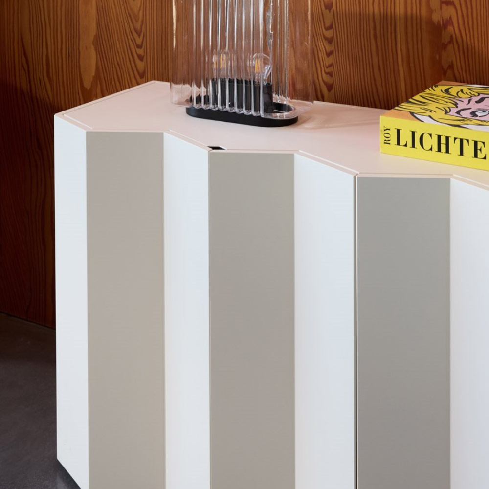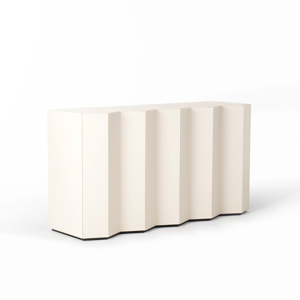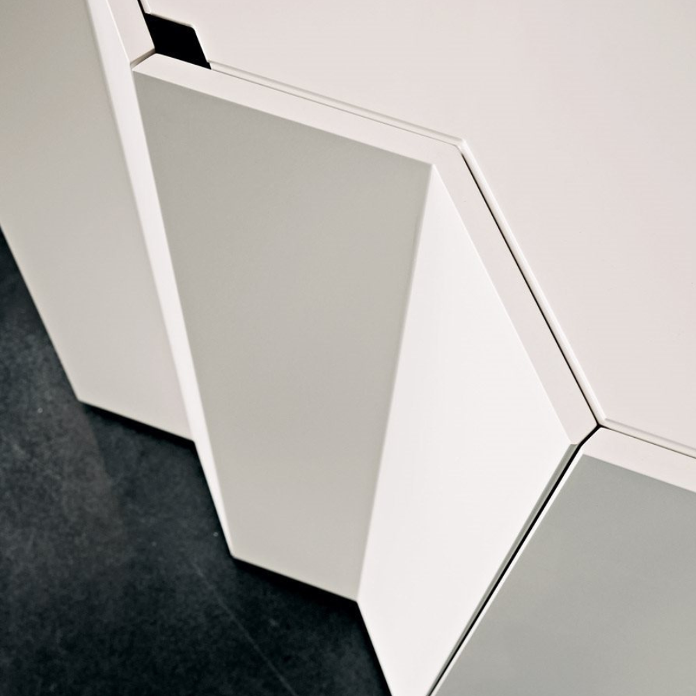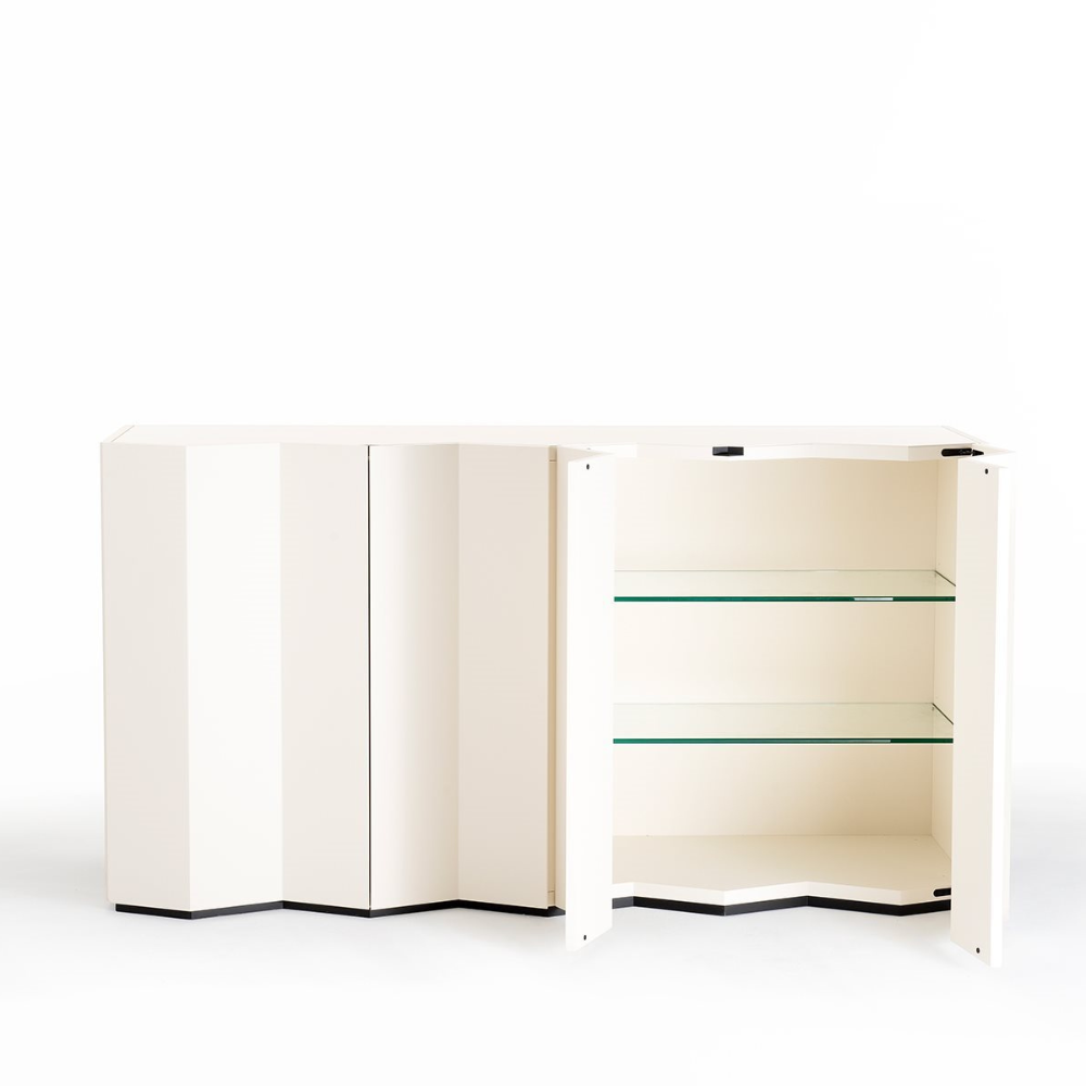 Talc-colored matte lacquered wood frame . Adjustable internal shelves made of 10 mm thick tempered glass.