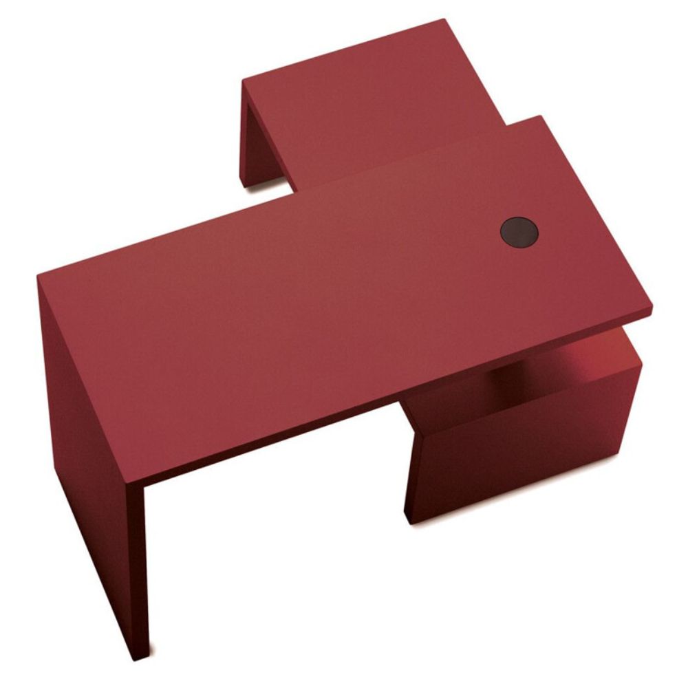Folding coffee table or side table in burgundy lacquered wood. Designed by Achille Castiglioni.