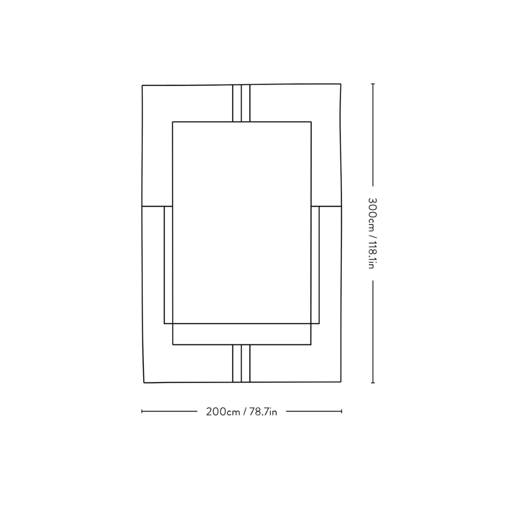 Hand-woven rug, composed of 77% wool, 13% viscose, and 10% bamboo silk. 200x300 cm