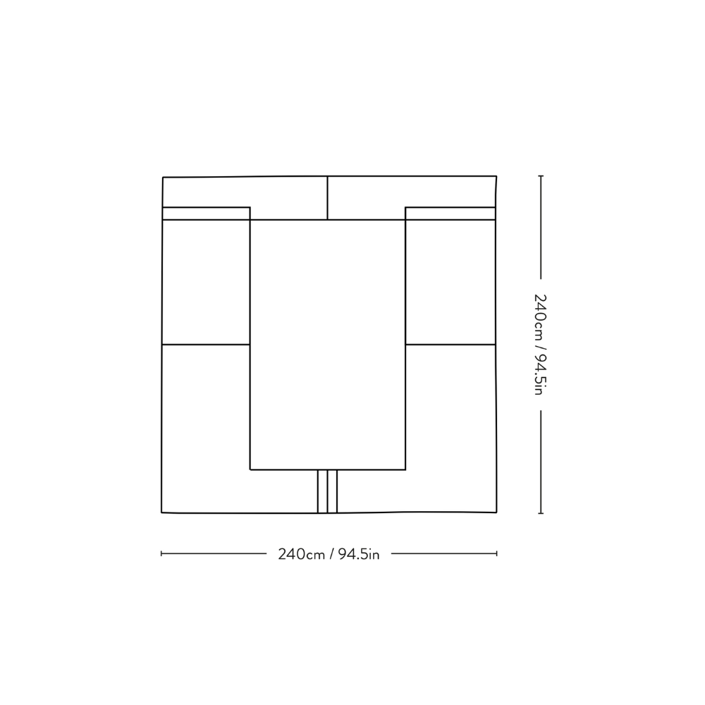 Bombay rug in golden brown. Hand-woven, composed of 77% wool, 13% viscose, and 10% bamboo silk. 240 x 240 cm.