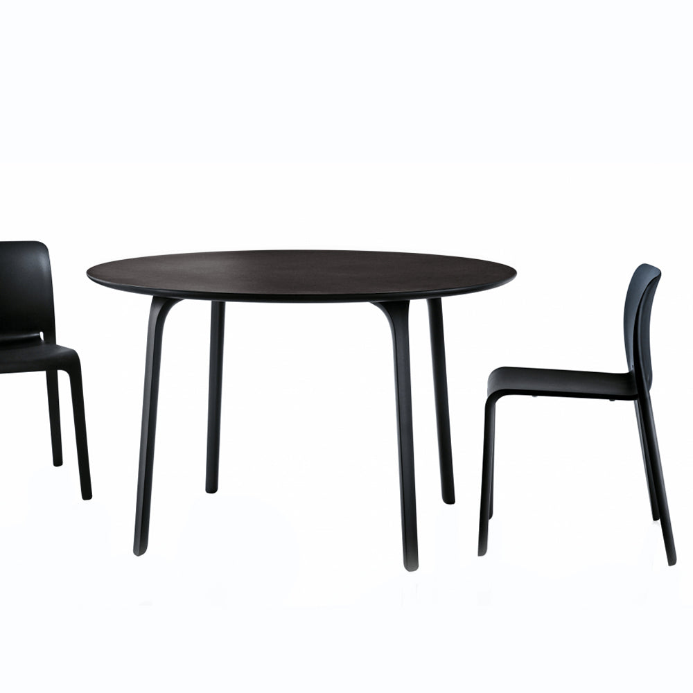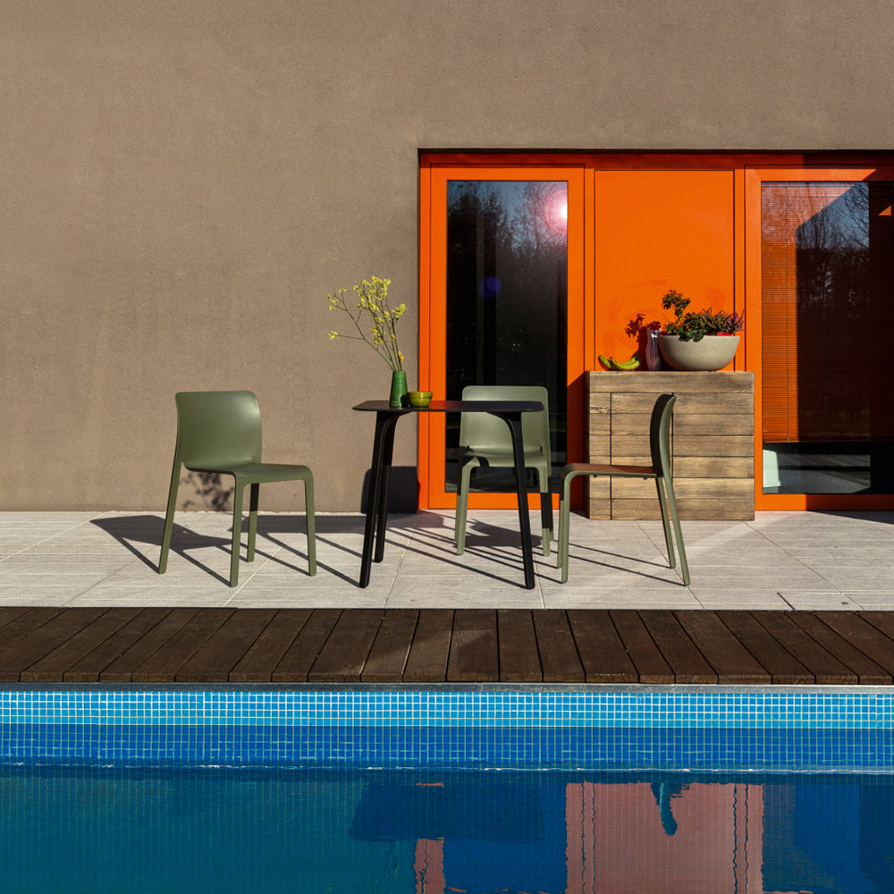 Stackable chair made of polypropylene and fiberglass. For indoor and outdoor use. Black. Dimensions: 50 x 52 x H 46/77.5 cm.