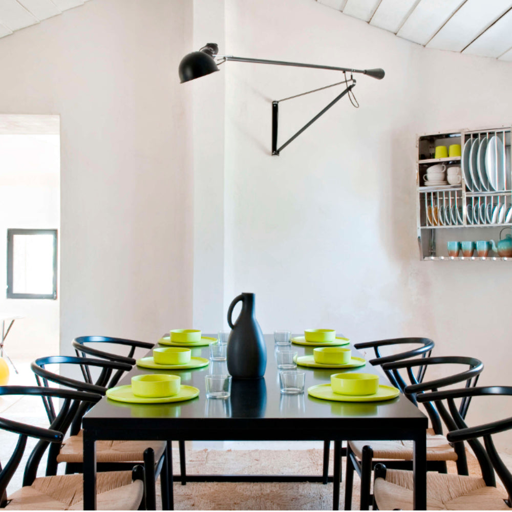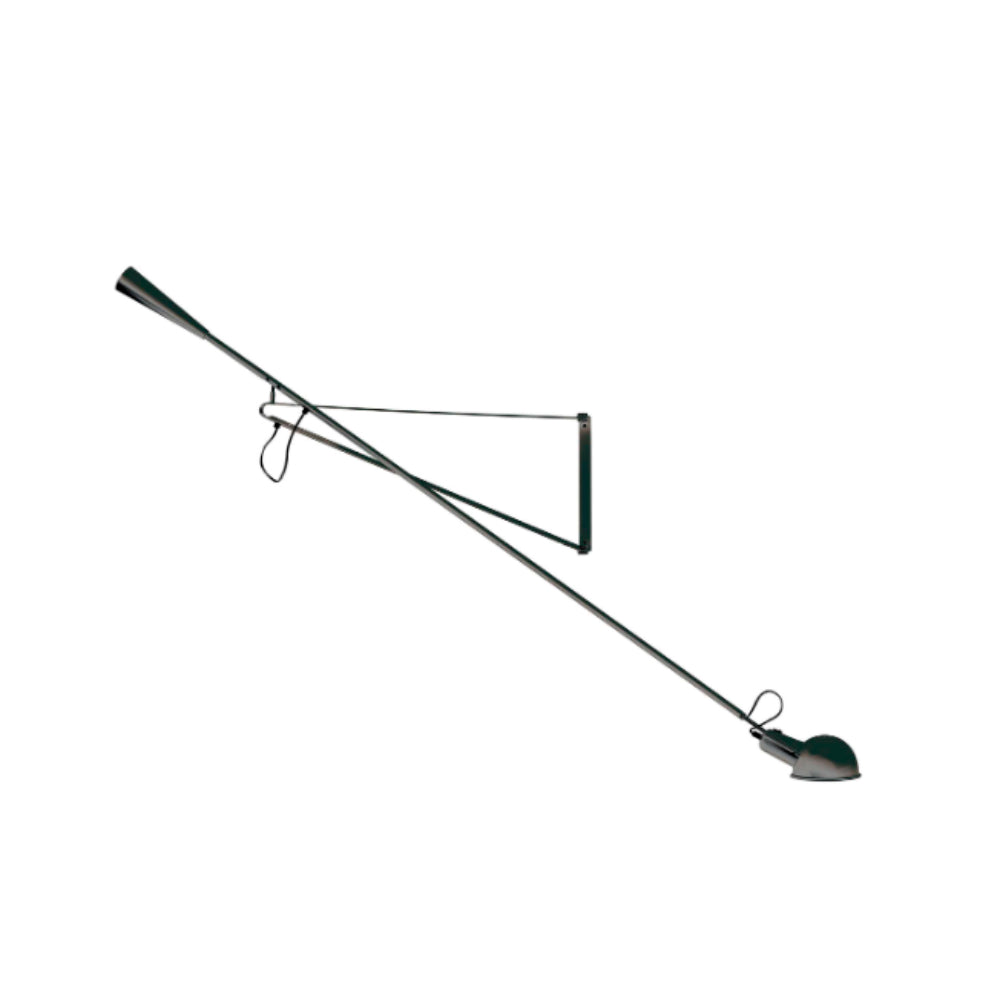 Direct light wall sconce. Adjustable arm and reflector made of painted steel. Chrome-plated brass reflector bracket. Cast iron conical counterweight. Painted steel wall sconce with integrated on/off switch. Black. Designed by Paolo Rizzatto, 1973.