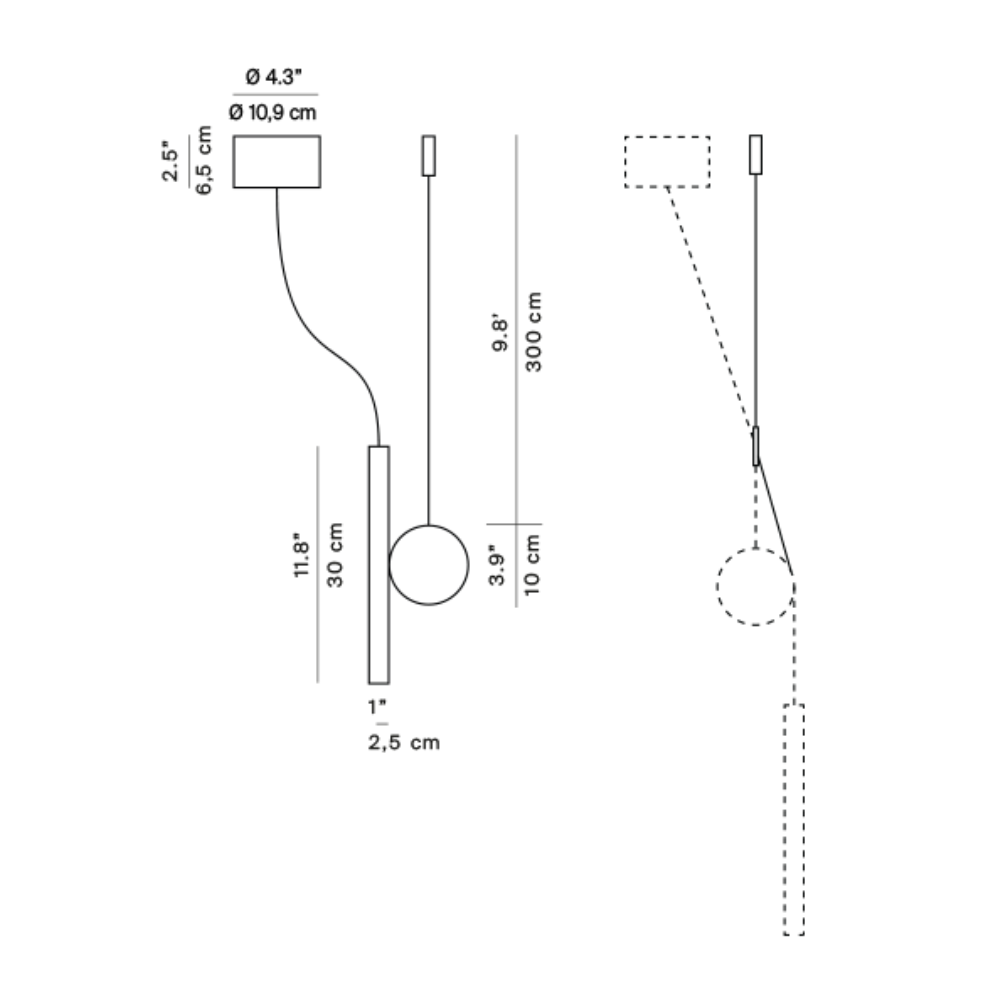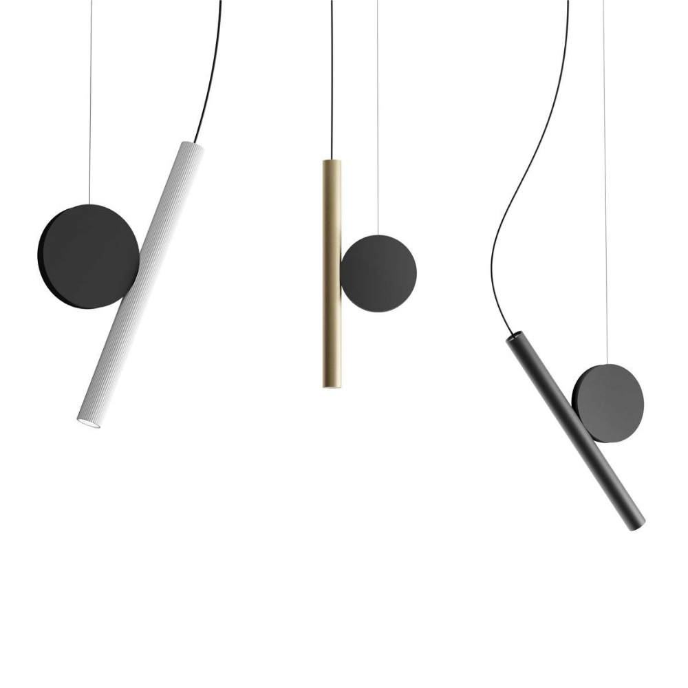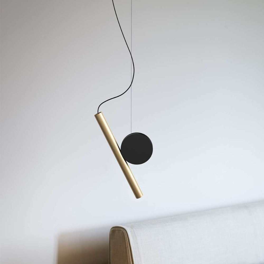 9W 291lm 27000K LED pendant light. Black counterweight, black canopy, and ottone suspension body (matte brass). The combination of the components can create different compositions to direct the light beam.