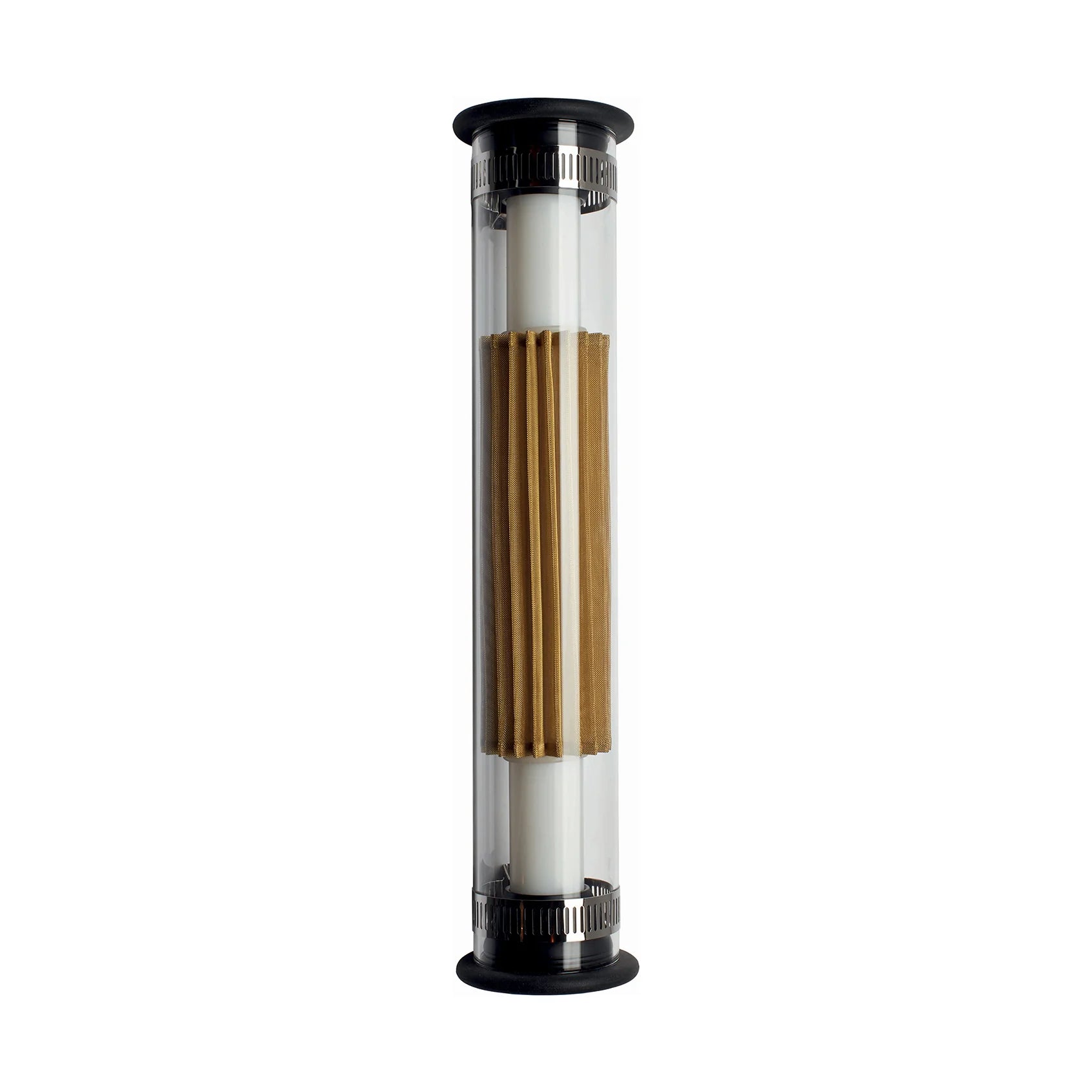 Diseñador:Diseñada por Dominique Perrault y Gaëlle Lauriot-Prévost, la lámpara In The Tube 360° 400 es una pieza de diseño arquitectónico y poético, concebida para resistir el paso del tiempo y adaptarse a interiores, exteriores y baños. Su estructura tubular en vidrio de borosilicato encierra una luz cálida y contenida que se refleja sobre la malla metálica interior, disponible en terminaciones dorada, plateada o sin malla.