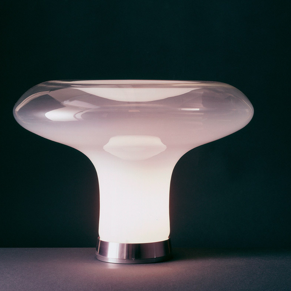 Table lamp with Murano glass body and diffuser and polished metal base. Provides diffused light.