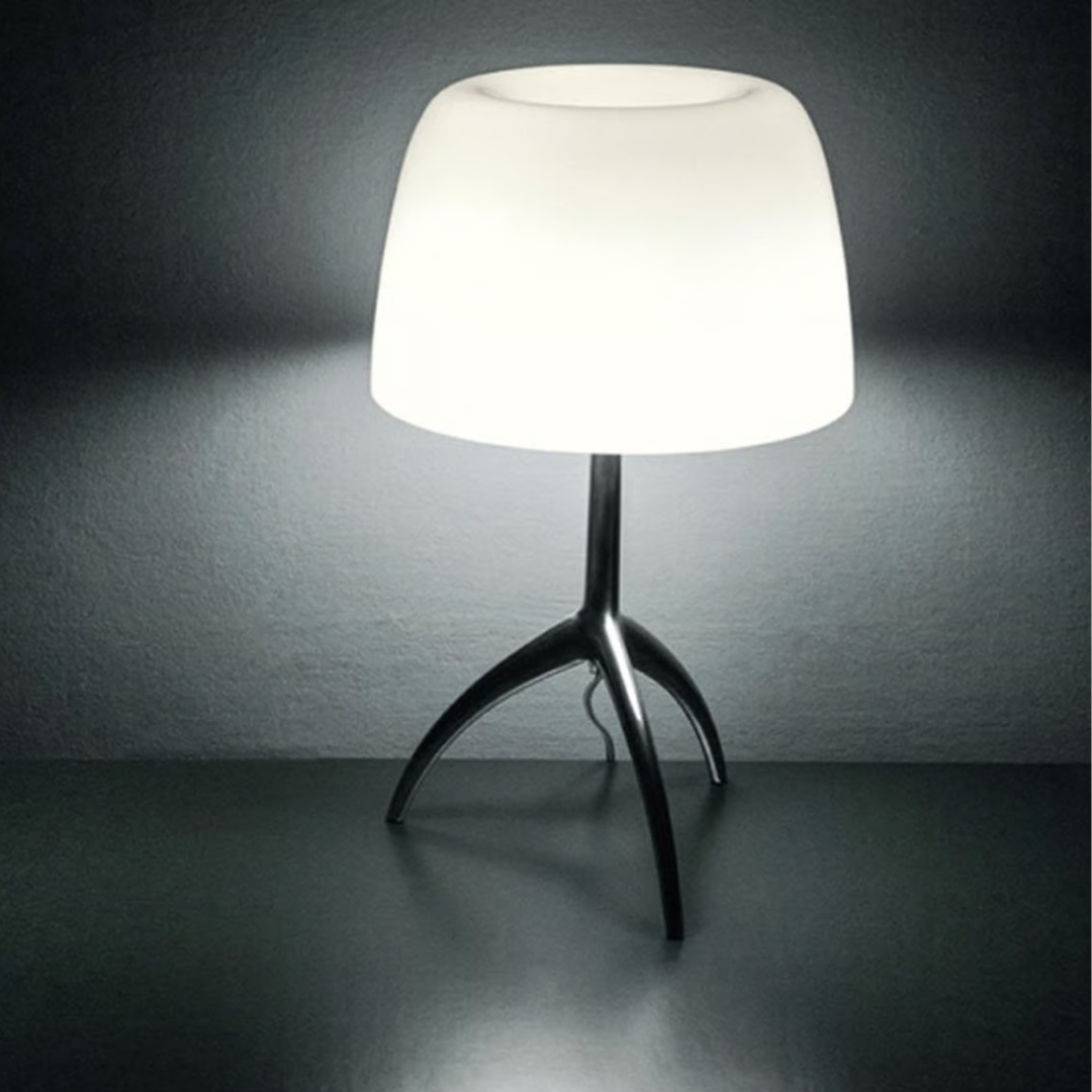Large table lamp, with warm white hand-blown glass and black painted brushed aluminum support, with transparent cable, LED retrofit included, 1x11, E27 2700K 1521 lm CRI>80.