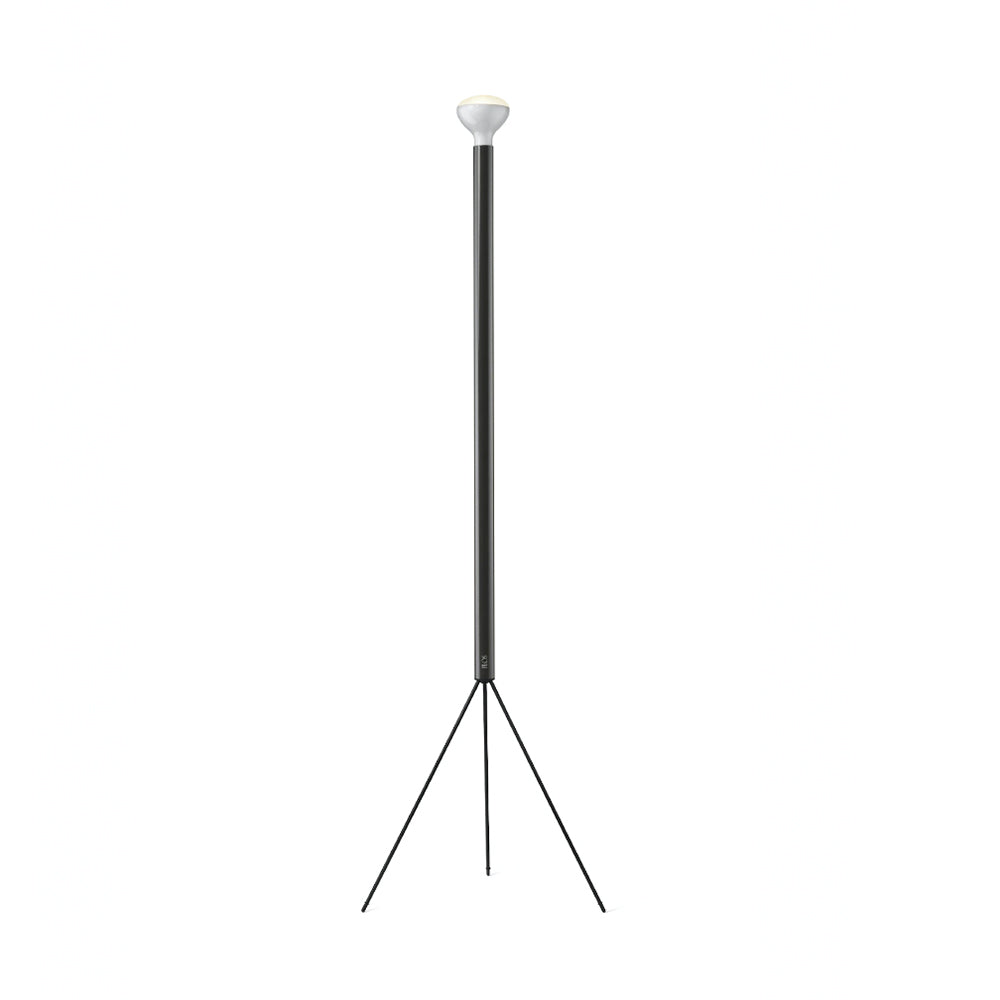 Indirect light floor lamp. Bulb with R125 reflector, 12W E-27 R125 LED reflector included. Black painted iron stem. Black painted galvanized metal legs with included dimmer. Designed by Achille and Pier Giacomo Castiglioni, 1954.
