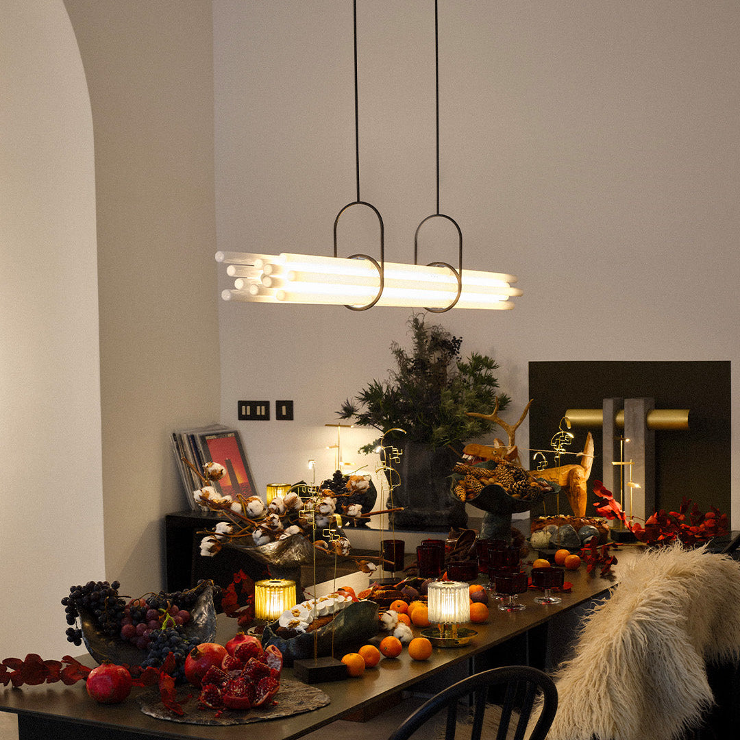 Diseñador:Entre el laconismo elocuente y el brutalismo sofisticado, la lámpara NL12 de DCW Éditions, diseñada por Sebastian Summa, irradia como un haz celestial suspendido en el espacio. Concebida para iluminar una gran mesa de comedor, combina precisión técnica y poesía visual en una composición de doce tubos de vidrio de borosilicato.
