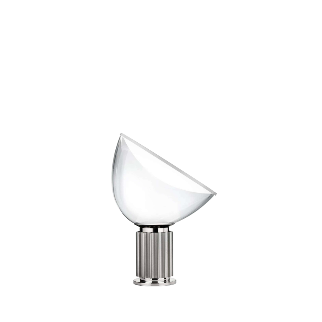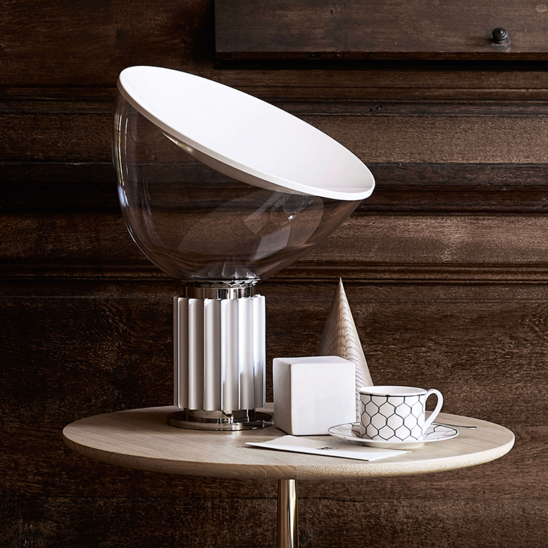 Diseñador: Achille and Pier Giacomo CastiglioniDiseñada por Achille y Pier Giacomo Castiglioni, 1962 — Taccia Small retoma el gesto audaz de dar la vuelta a una lámpara de techo, condensando su presencia en una versión más íntima.