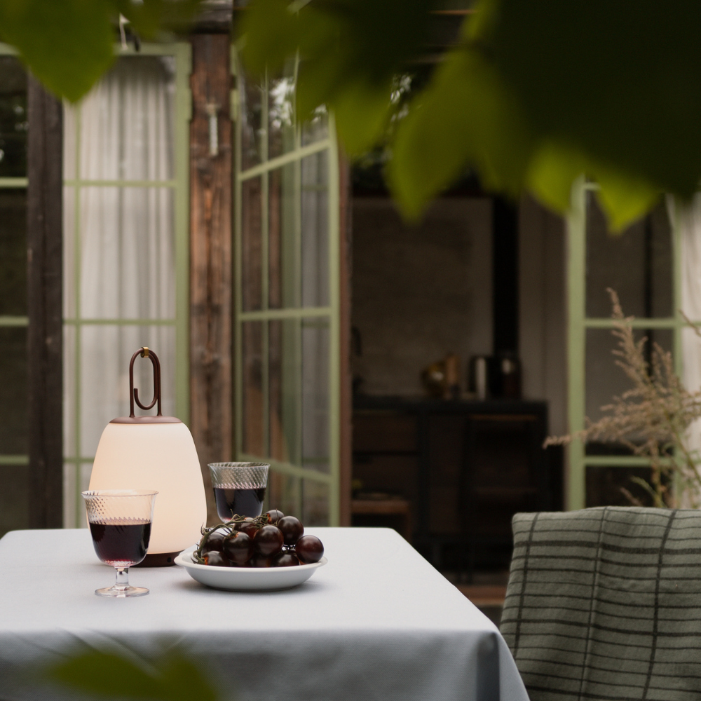 This elegant portable lamp, inspired by the golden glow of Lucca, Toledo, mimics the warmth of the city's nightlights. Designed as a multifunctional piece, the battery-powered Lucca lamp can be easily moved from indoor to outdoor settings.