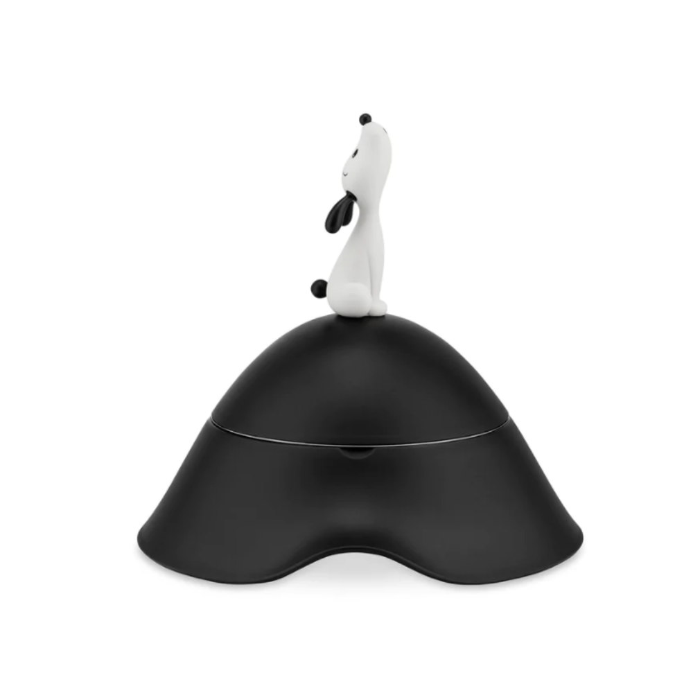 Dog bowl made of polished 18/10 stainless steel and thermoplastic resin, black. Diameter 22.7 cm, height 21.2 cm, capacity 60 cl