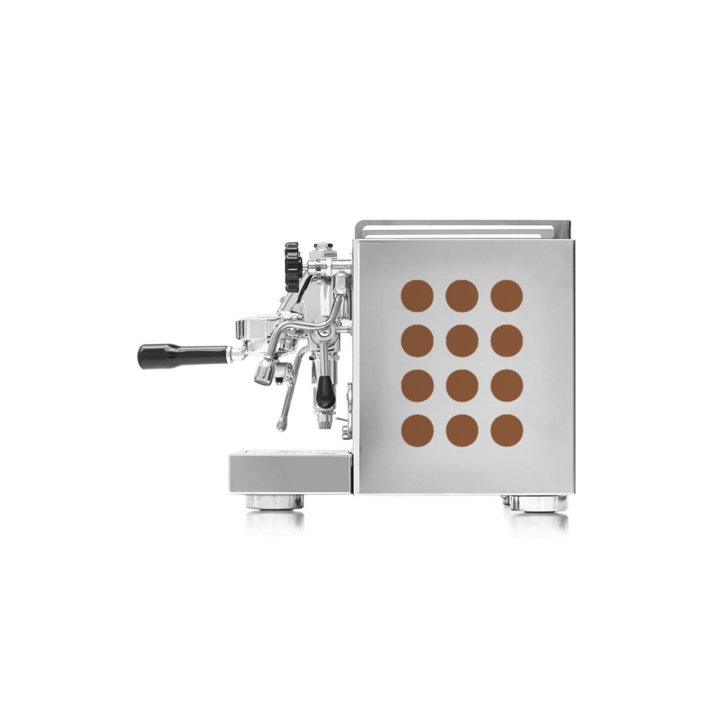 Appartamento is a compact espresso machine designed for environments where space is limited. Rocket engineers optimized the chassis and internal component layout without compromising the quality and features you expect from Rocket Espresso. Available in a traditional stainless steel finish. Circular copper side inserts.