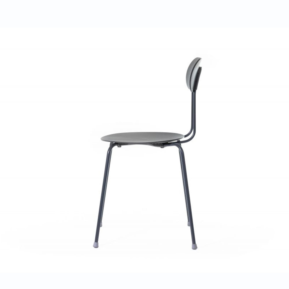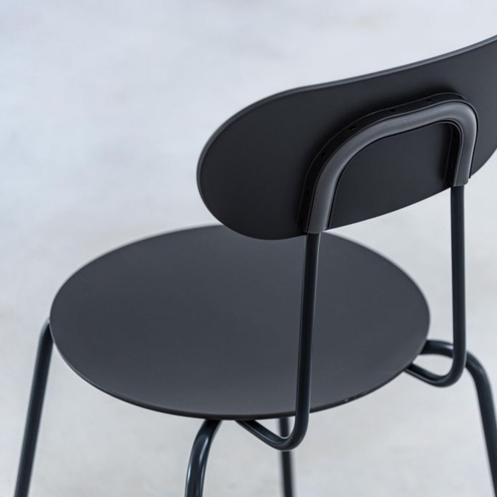 The image is only apparently that of a small chair from the 1950s, but with a series of additional details, which transforms a humble chair into an intelligent object: this luminous chair is composed of a slim frame combined with a rounded seat and backrest, joined to the frame with a series of molded ribs, the section of the chrome-plated steel tube legs is thinner and more precise and, in addition, the polypropylene seat and backrest are not fixed to the frame through screws or rivets, but through a series of molded plastic ribs that embrace the metal structure on the hidden side of the seat and backrest. The Mariolina chair is characteristic of Enzo Mari with its light and sculptural form.