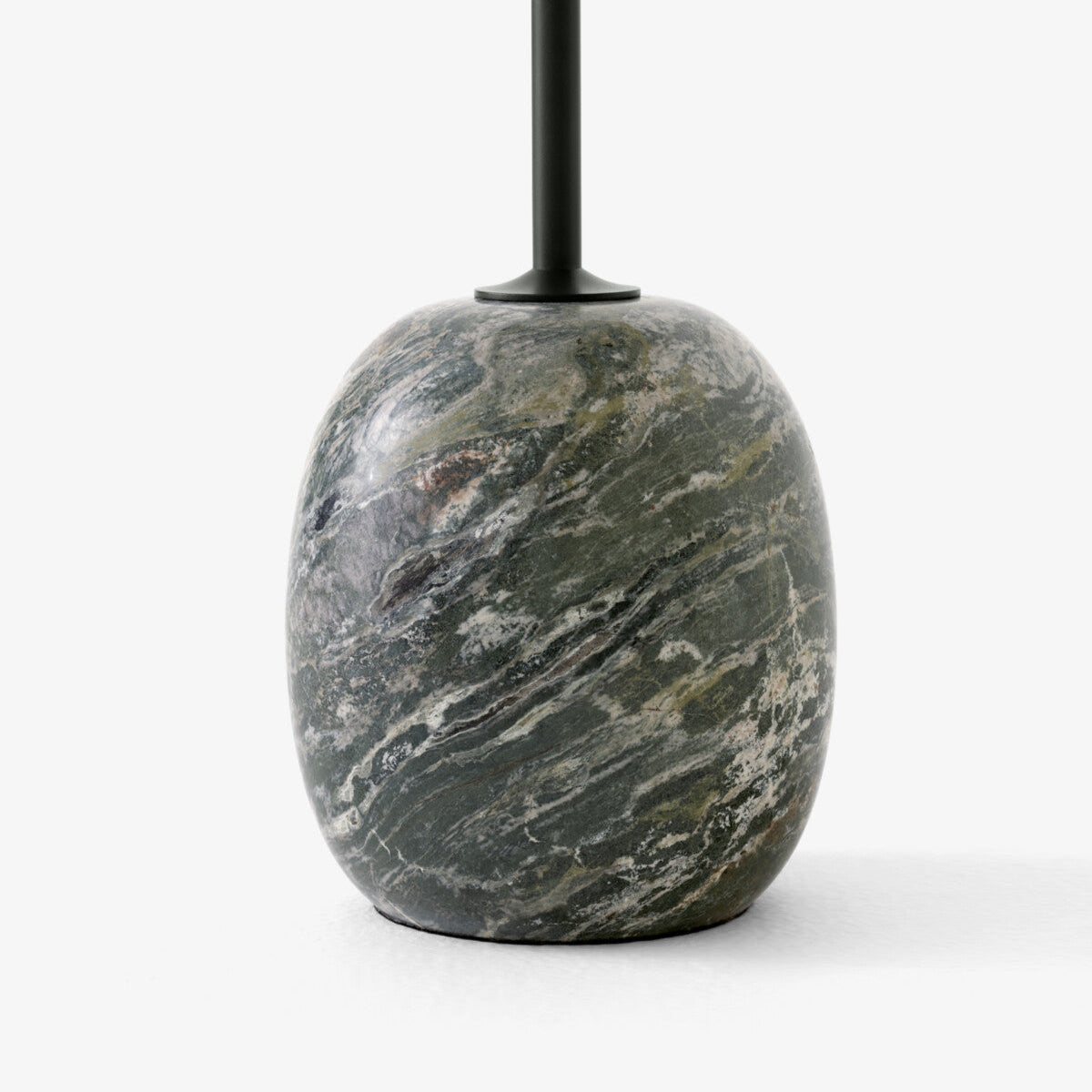 Proceso de producción: La base de mármol se tornea y se pule hasta obtener un acabado semimate. La estructura es de acero con pintura en polvo, y el sobre puede ser de acero o de chapa de madera lacada (nogal o roble), según la versión.