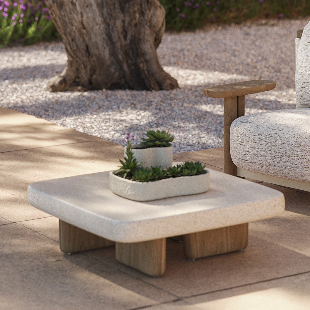 Con una superficie de cemento y patas de madera de iroko, la mesa Milos encarna la calidez y la autenticidad propias del Mediterráneo. Sus líneas suaves y proporciones equilibradas aportan serenidad al espacio, integrándose con naturalidad en ambientes interiores y exteriores.