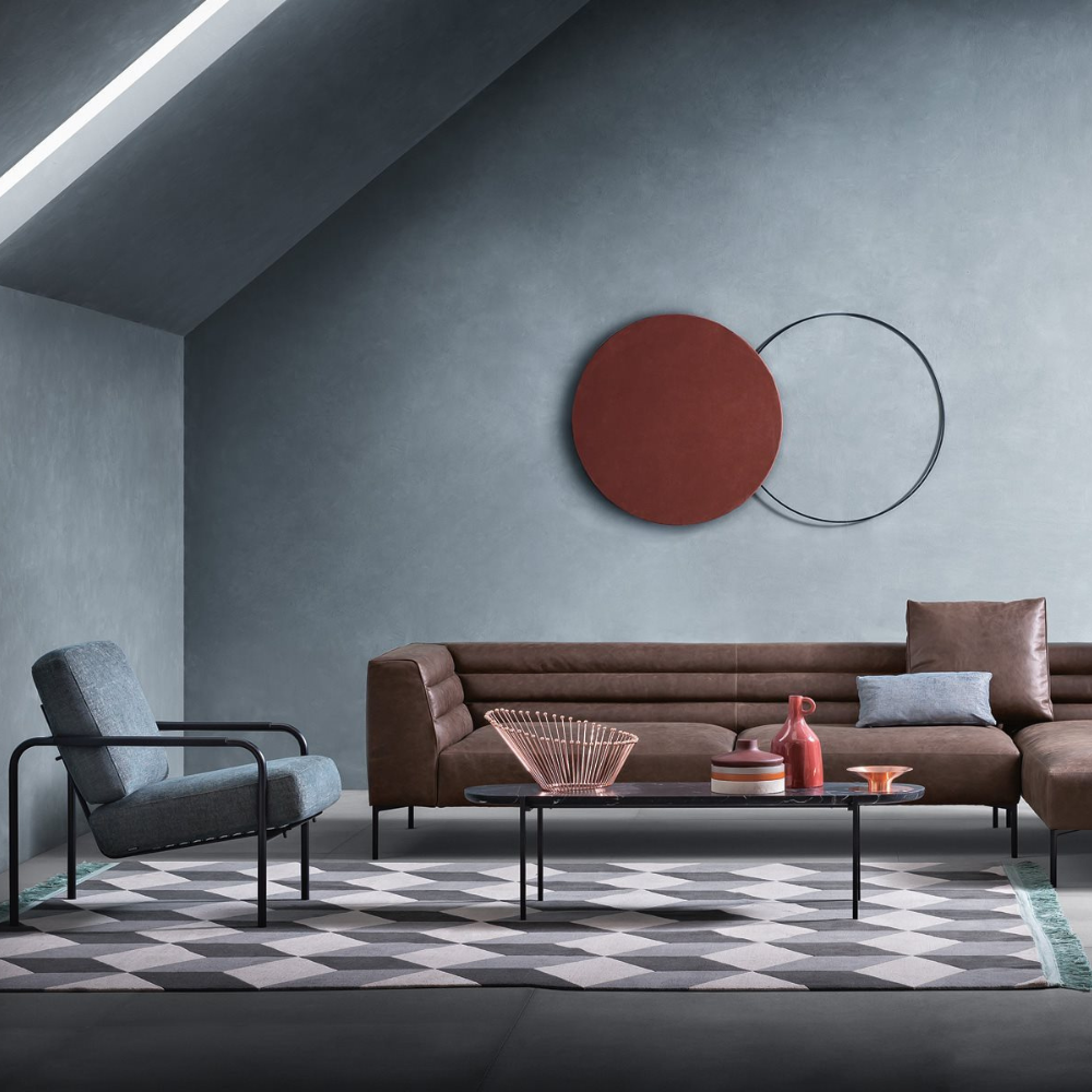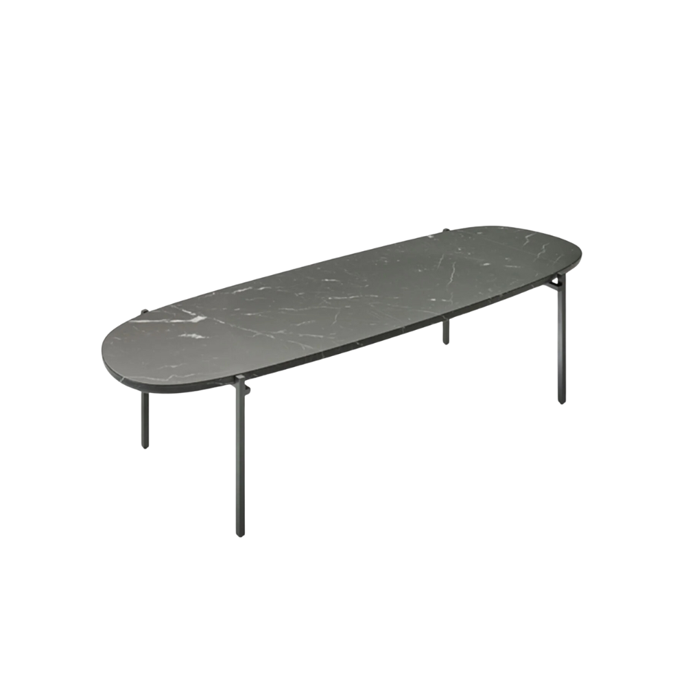 Coffee table with a black-painted steel frame. Marquina marble tops with a protective, stain-resistant varnish in matte transparent polyester.