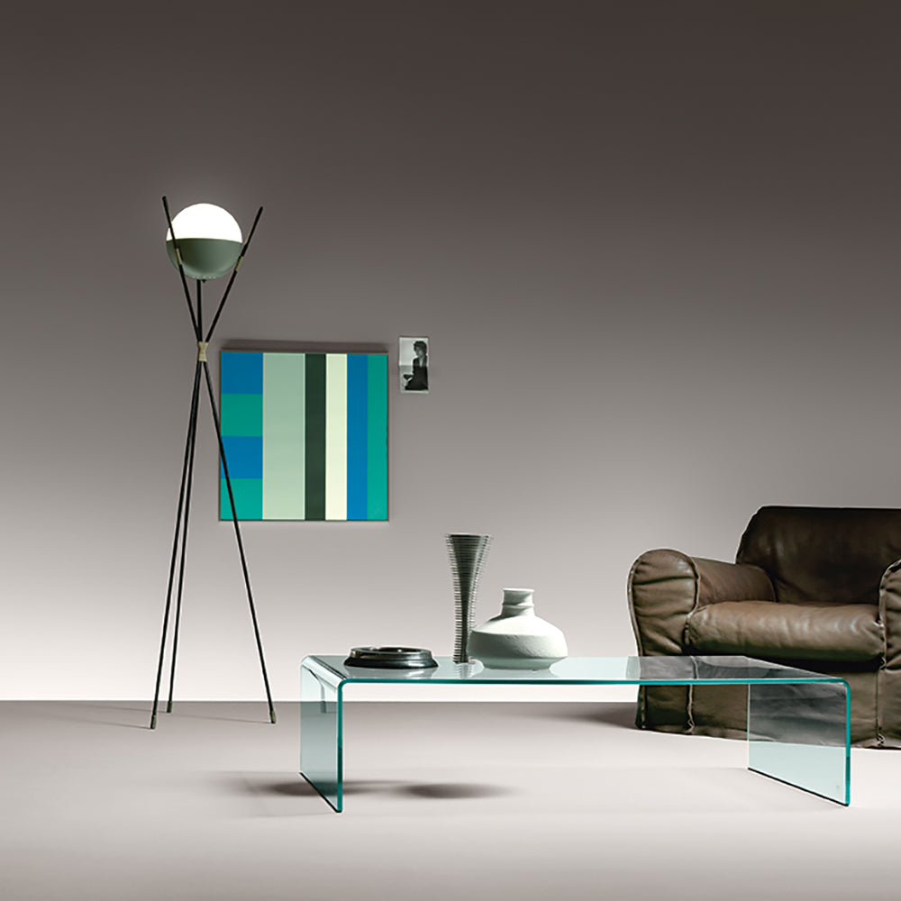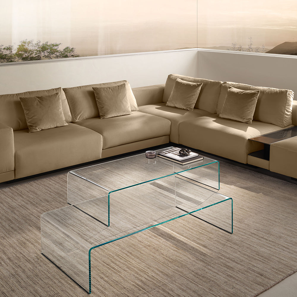 Low rectangular table in extra-clear transparent glass e=15mm.