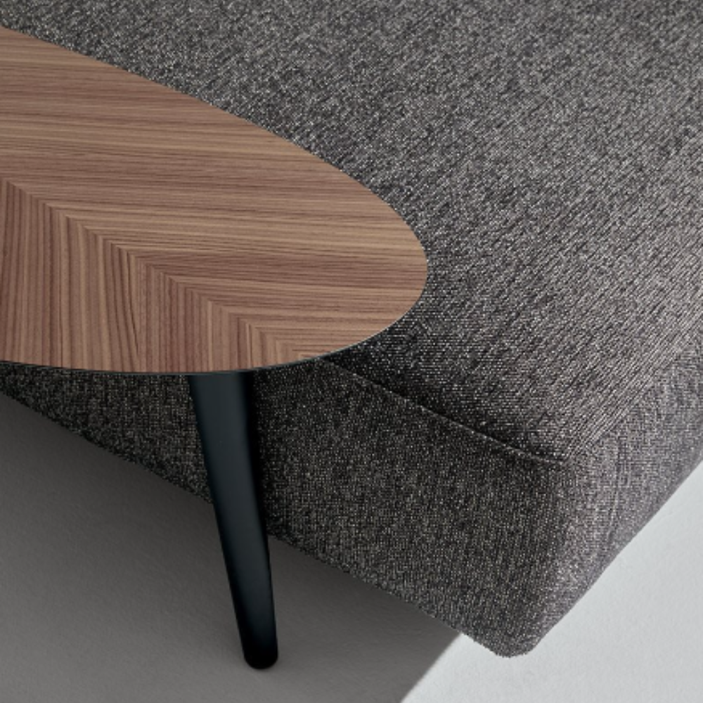 Canaletto walnut coffee table. Tubular legs in matte black painted stainless steel.