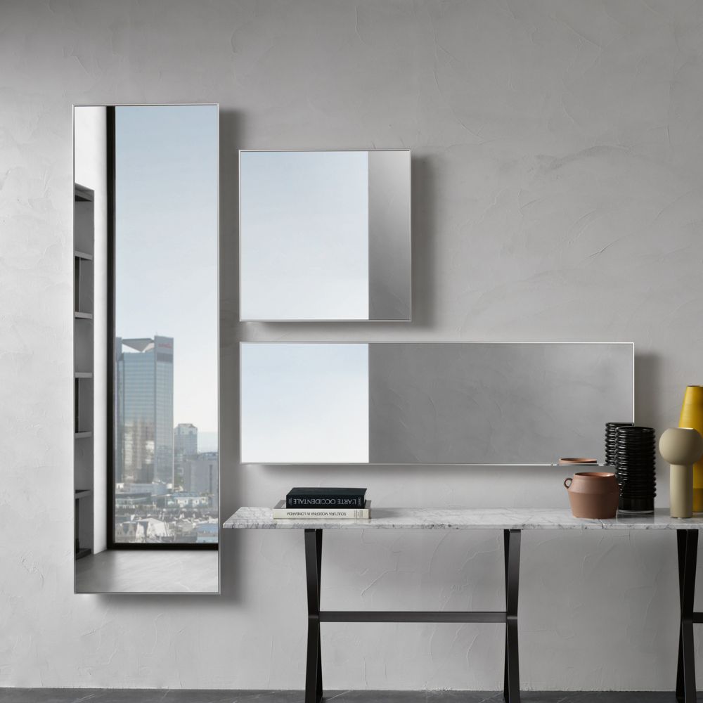 Wall mirror designed by Daniel Libeskind with an aluminum frame. 200 x 60 cm.