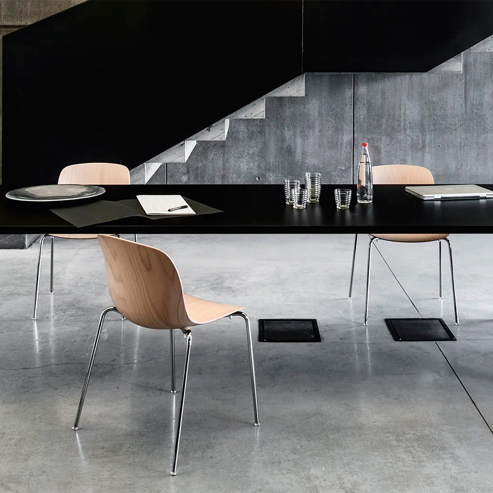 Designed to adapt naturally to different contexts—from domestic interiors to terraces or meeting spaces—this table embodies the balance between constructive rigor and visual lightness. A discreet yet confident presence that blends seamlessly into demanding environments.