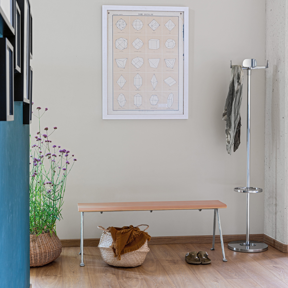 Coat rack with base, Umbrella stand and coat rack made of polished die-cast aluminum. Glossy aluminum tube frame.
