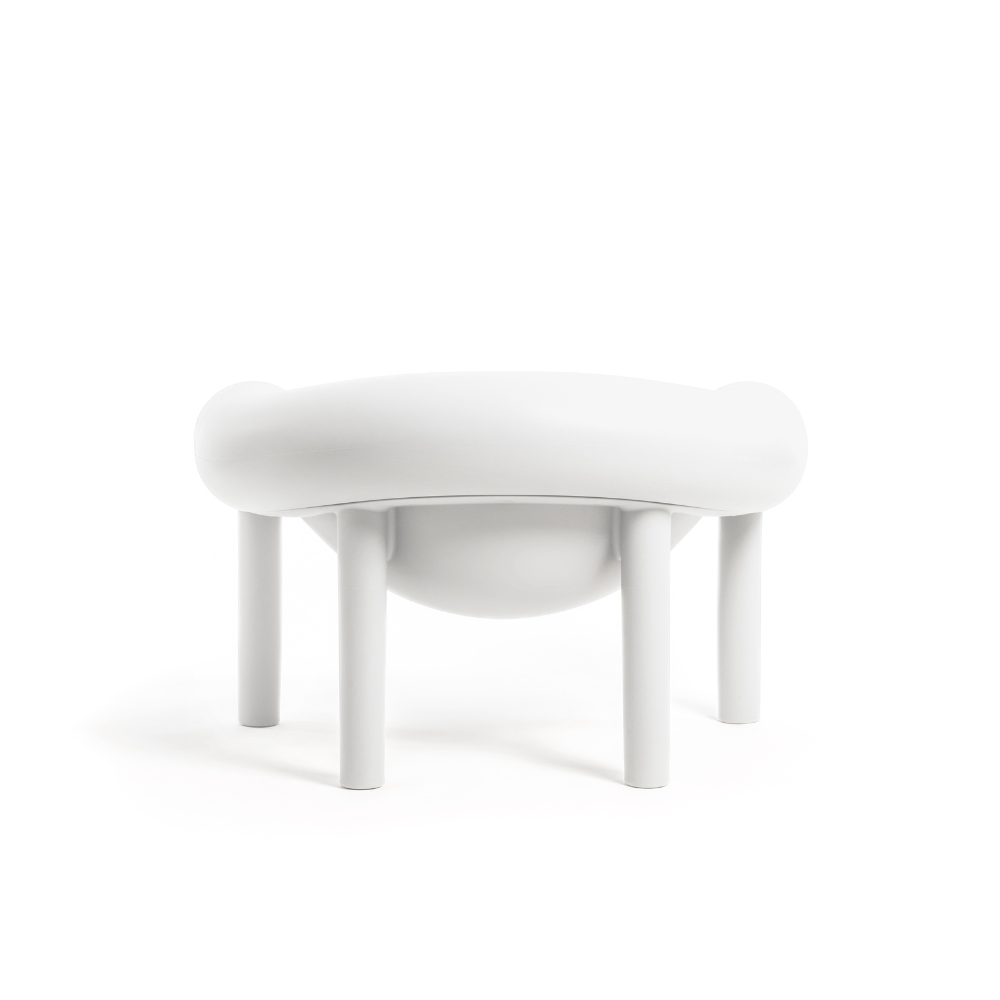 Rotationally molded polyethylene armchair in white. Suitable for outdoor use.
