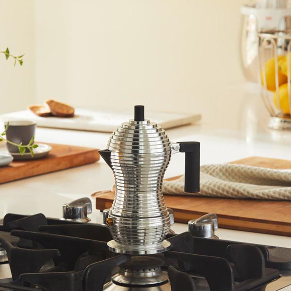 Diseñador: Michele De Lucchi The Pulcina espresso machine is the result of a long collaboration to create a "moka pot of the 2000s," initiated by Alessi and illycaffè, with the aim of increasing the functionality of the classic moka pot and developing a shape that would enhance the organoleptic properties of coffee. By analyzing the processes that occur inside a moka pot, experts at the illy R&D Laboratory identified the ideal shape to achieve optimal coffee extraction, highlighting its aroma.