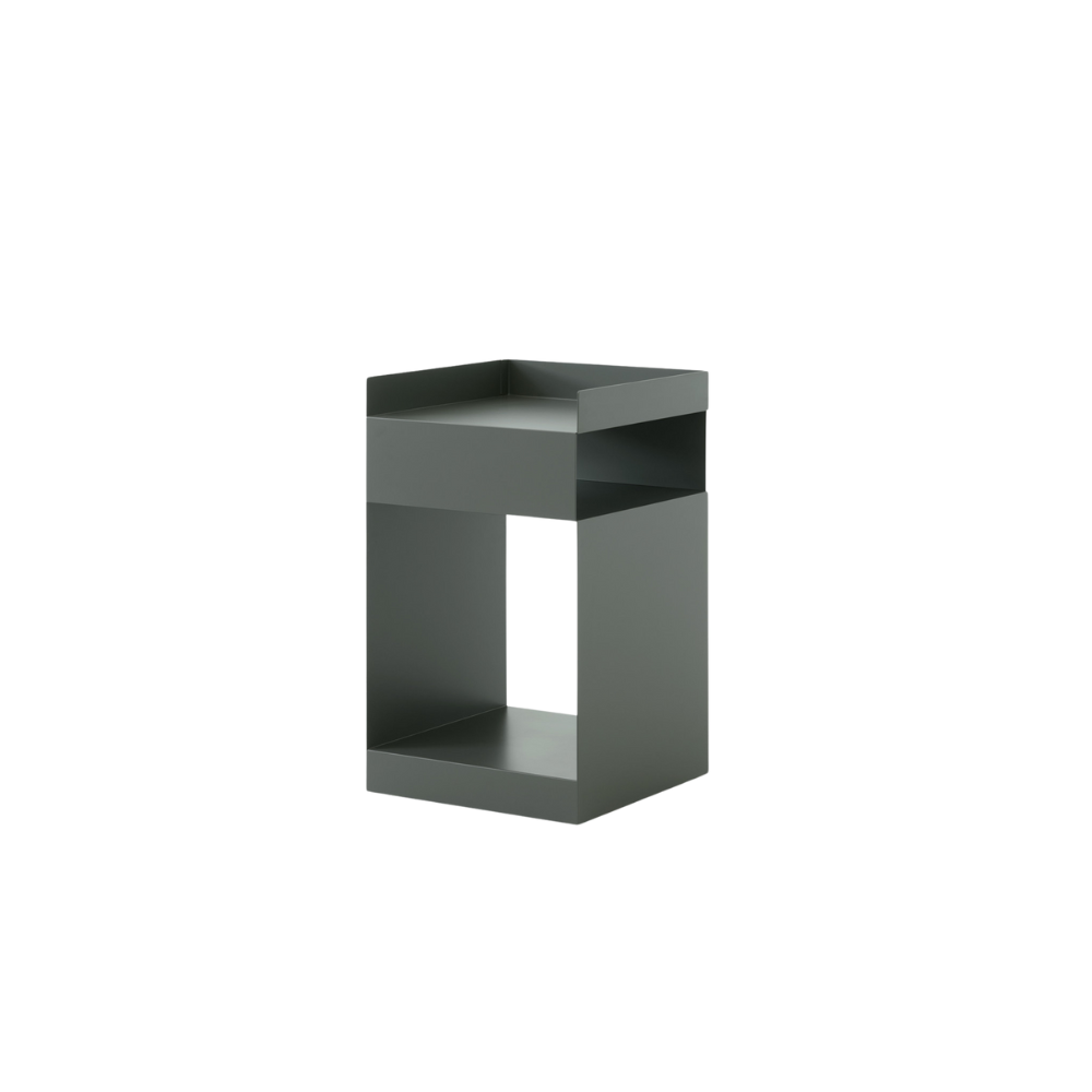 Metal side cart with wheels, hunter green color, Made from a single piece of powder-coated sheet metal. Designed by Space Copenhagen in 2022.