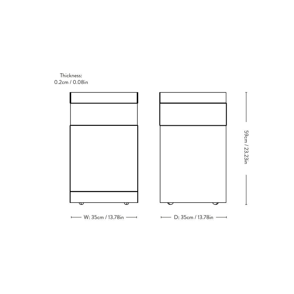 Created to serve a wide variety of purposes, from an office cart to a nightstand to a bathroom storage unit, this asymmetrical piece can be inserted into any space. To ensure maximum adaptability, it sits on discreet casters that facilitate quick and easy maneuvering from one place to another.