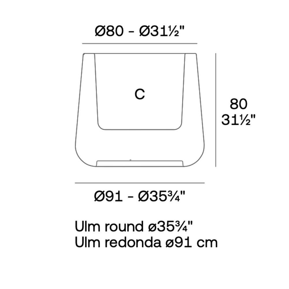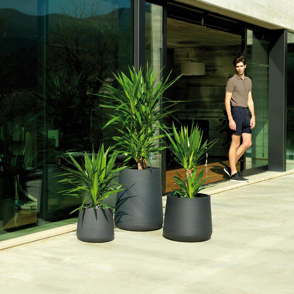 Anthracite-colored self-watering planter, made of rotationally molded polyethylene resin with a double wall. 100% recyclable. Suitable for indoor and outdoor use. Basic version.