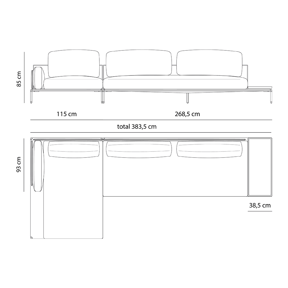 - Chaise longue length: 160 cm