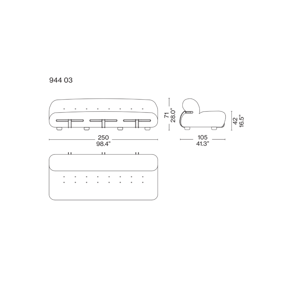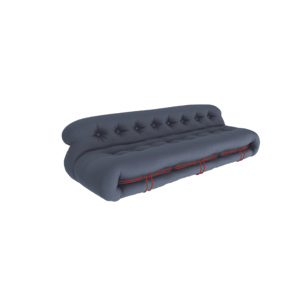 What distinguishes Soriana is its enveloping silhouette and generous padding, inviting you to immerse yourself in its comfort. Its structure is defined by an elegant tensioning system with metal clamps, which compresses the upholstery and creates subtle folds, highlighting its voluptuous and relaxed aesthetic. It was an innovative proposal for its time: an armless sofa that reflected the informal and cozy spirit of the late 1960s and 1970s.