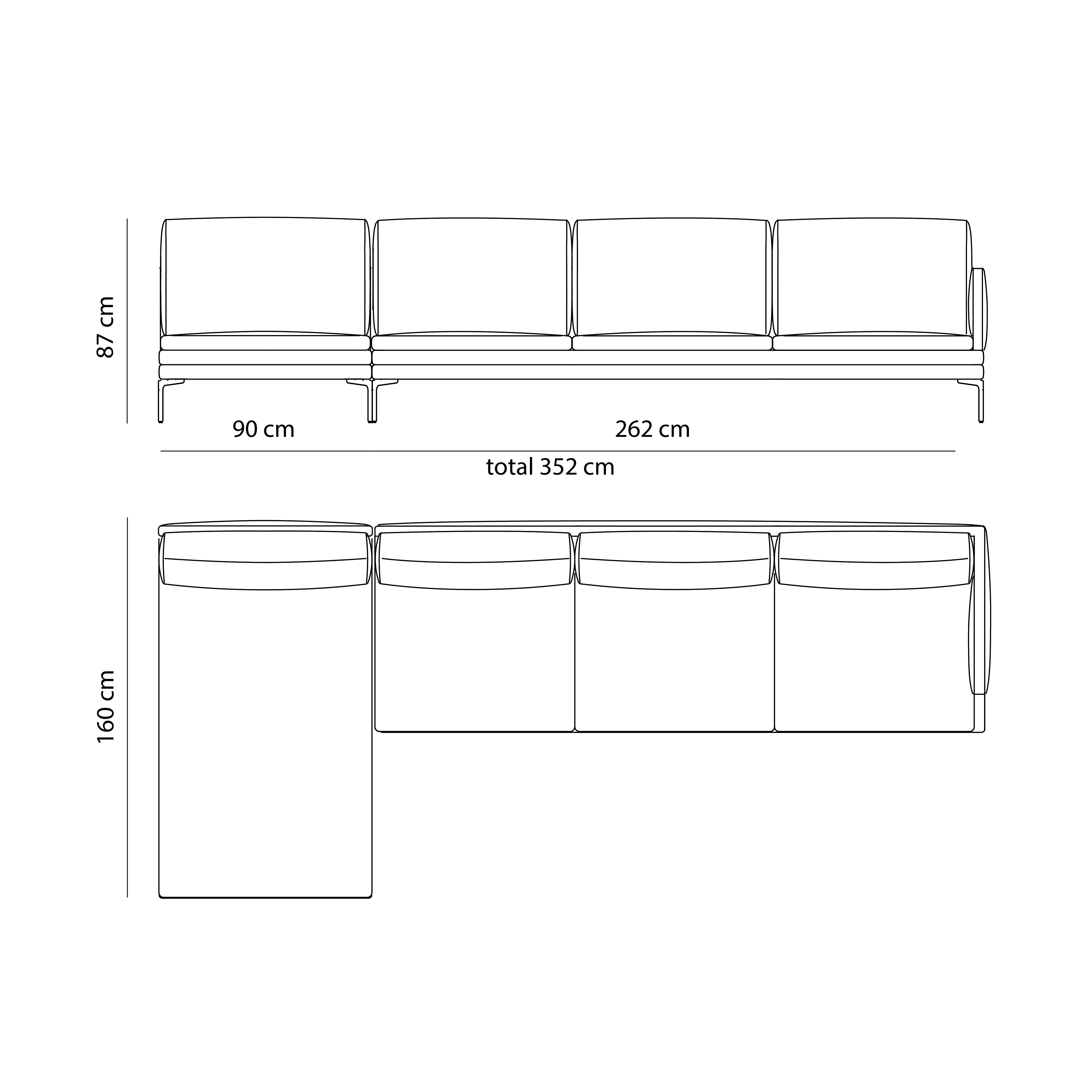 William modular sofa composed of a 3-seater module and a left-hand chaise longue in Talento Cat30 acqua fabric (027642) , composition 72% linen, 14% cotton, 14% viscose. Natural satin nickel legs . Back cushion and armrest cushion in 100% virgin goose down. Removable outer cover. Two possible configurations.