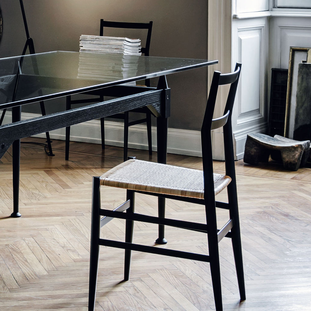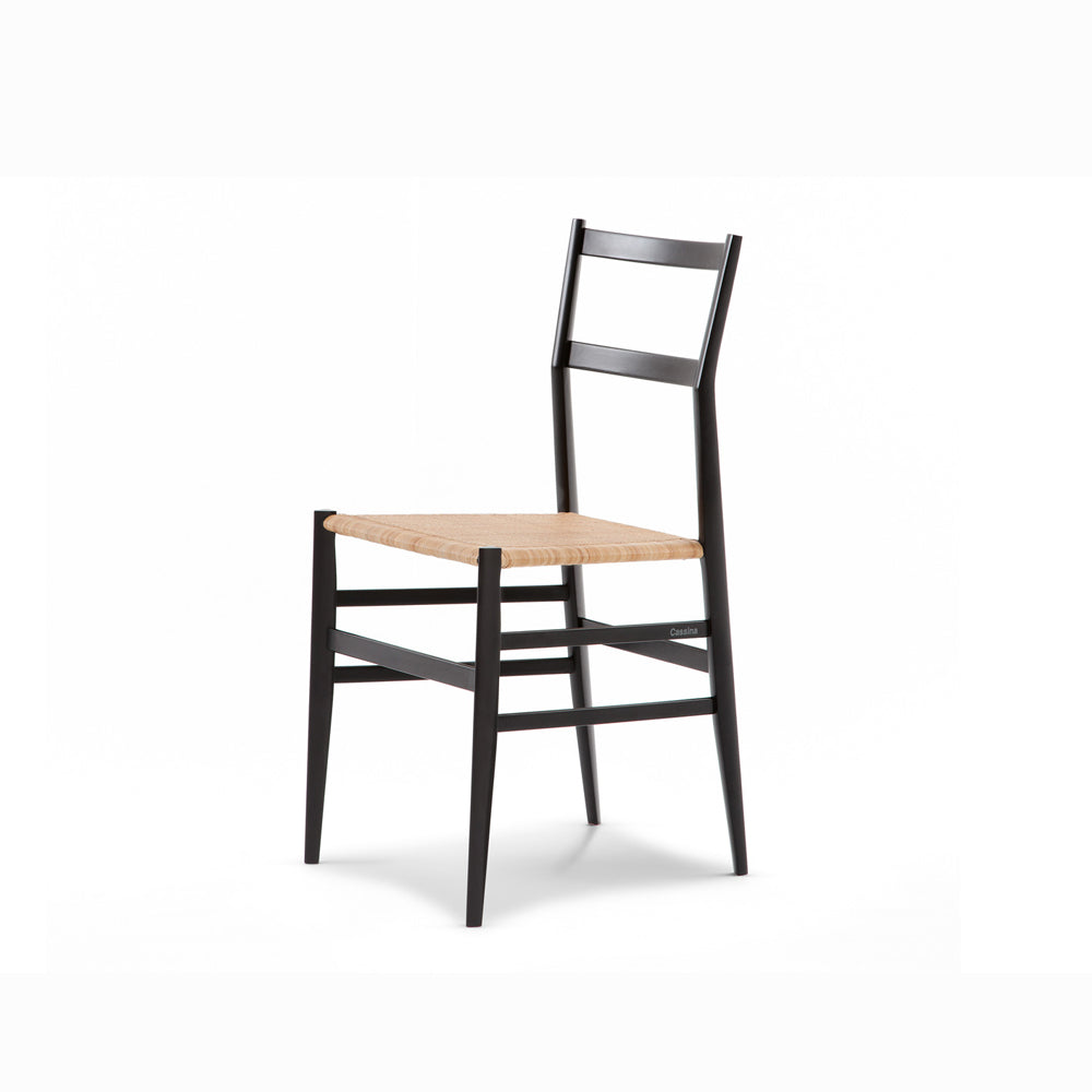 Black lacquered ash wood chair with a natural Indian cane seat. Dimensions: 41 x 45 x H46/83 cm.