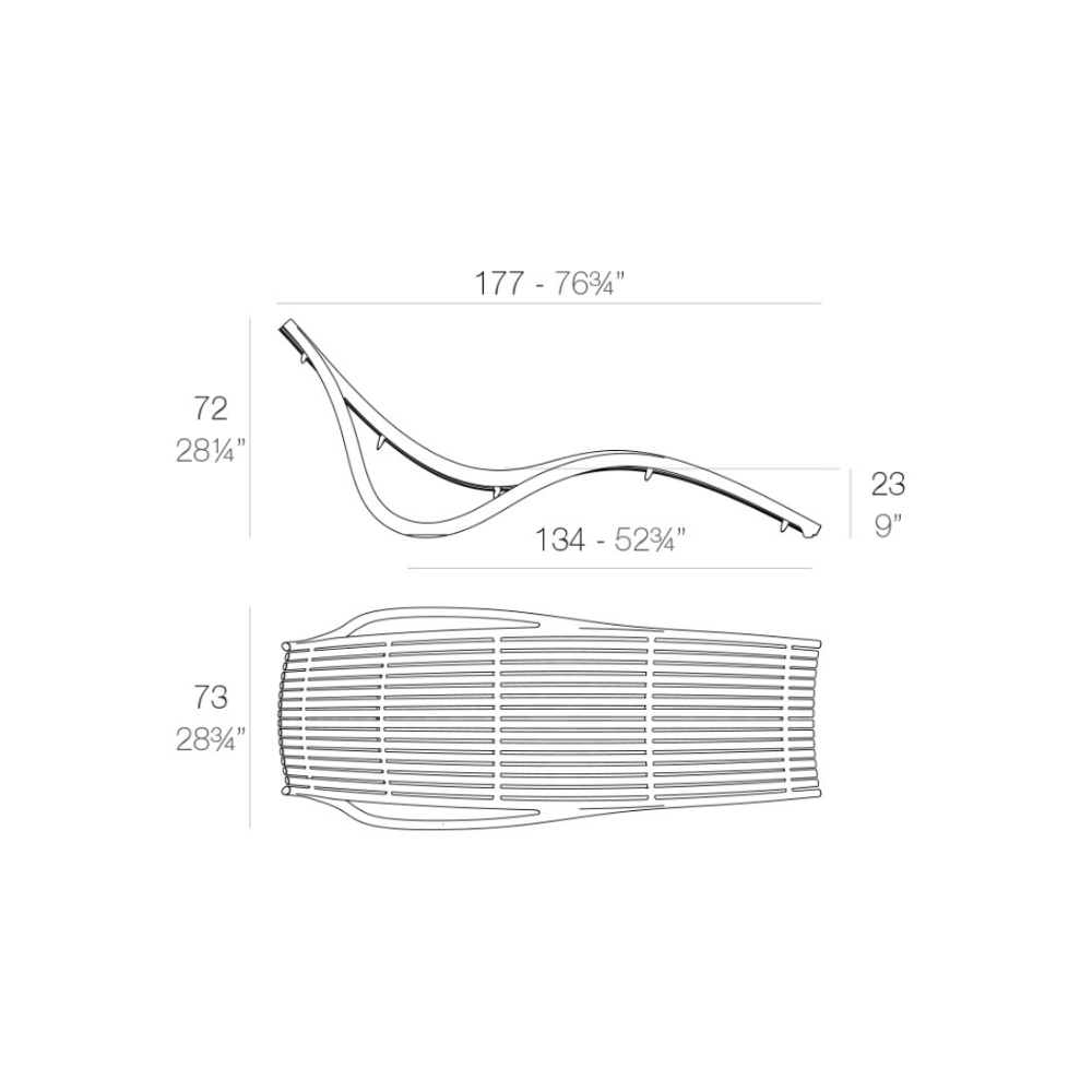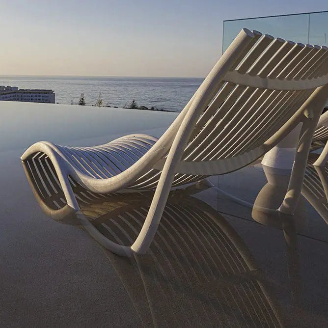 Fabricada en polipropileno por inyección con gas y reforzada con fibra de vidrio, la tumbona Ibiza combina ligereza, resistencia y confort. Su silueta fluida evoca movimiento y descanso, integrándose naturalmente en terrazas, jardines o zonas de piscina. Es apilable, apta para uso interior y exterior.