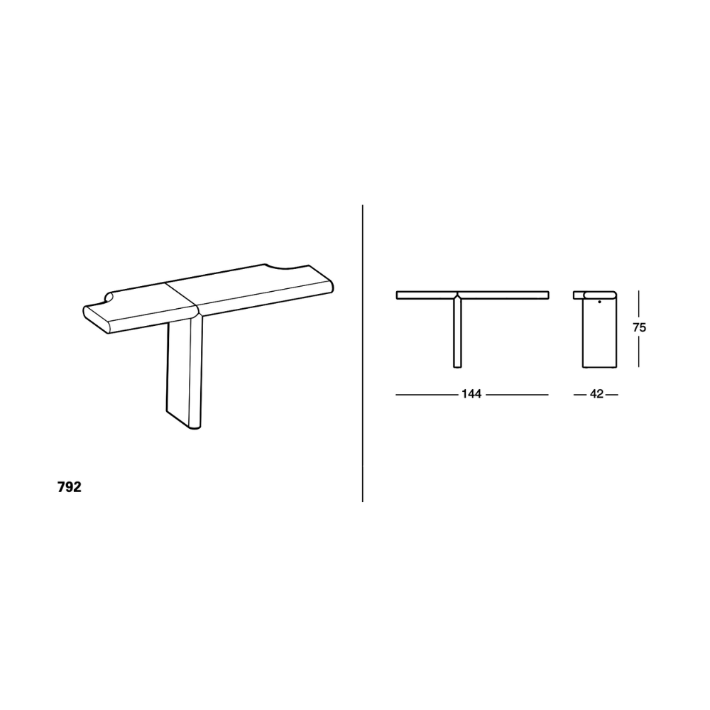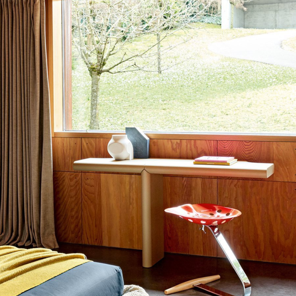 Console table with a matte talc-lacquered MDF frame. Must be wall-mounted.
