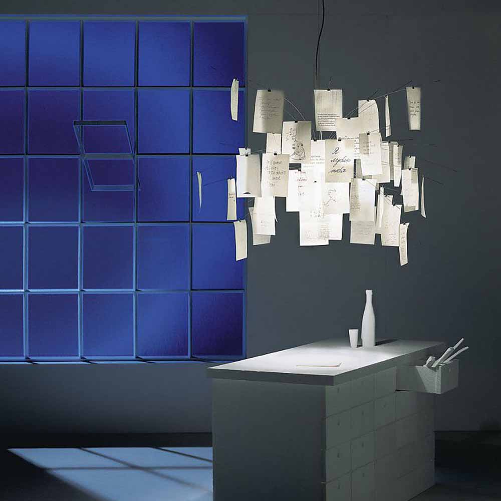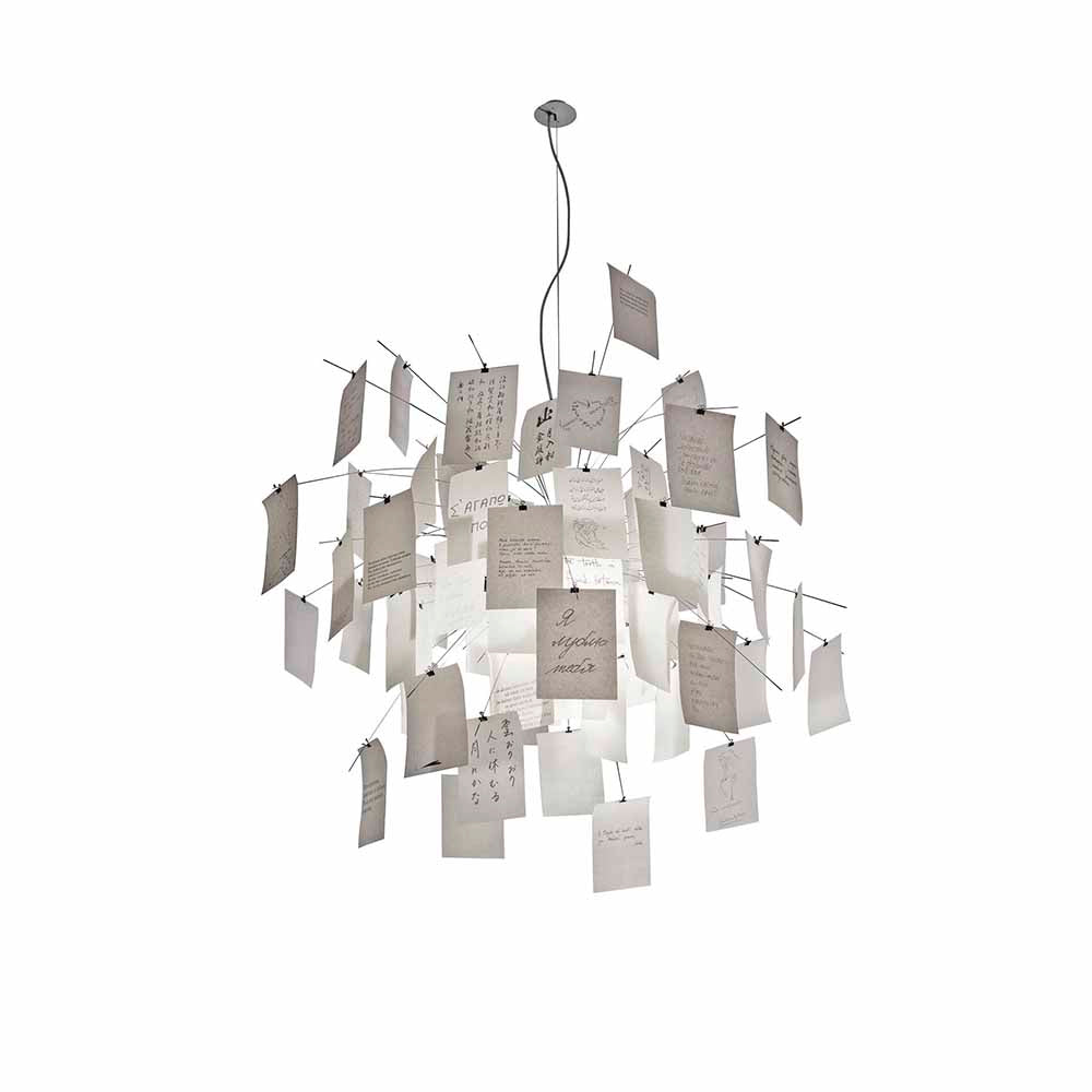 Diseñador: Ingo Maurer A customizable pendant lamp that combines design, poetry and light.