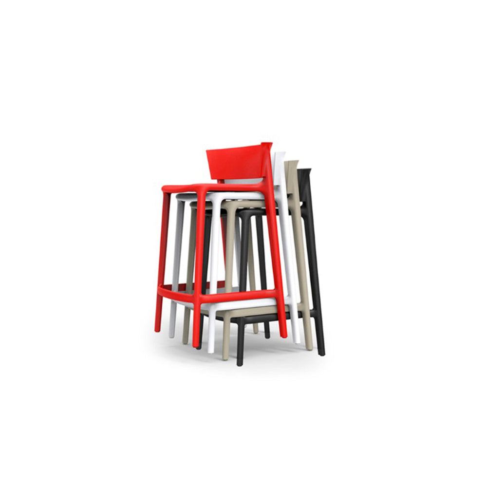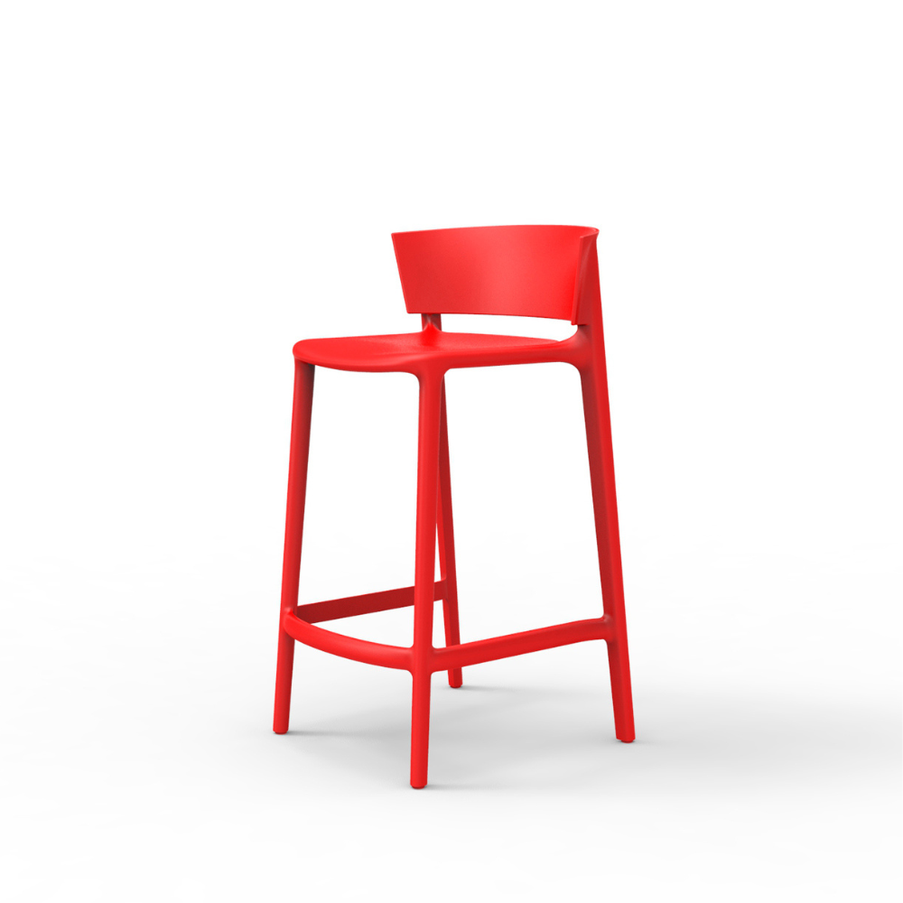 Fabricado en polipropileno por inyección con gas air moulding y reforzado con fibra de vidrio, el taburete Africa destaca por su resistencia y practicidad. Es apilable, de fácil mantenimiento y disponible en una amplia gama de colores, entre ellos el tono rojo, que aporta energía y vitalidad al espacio.